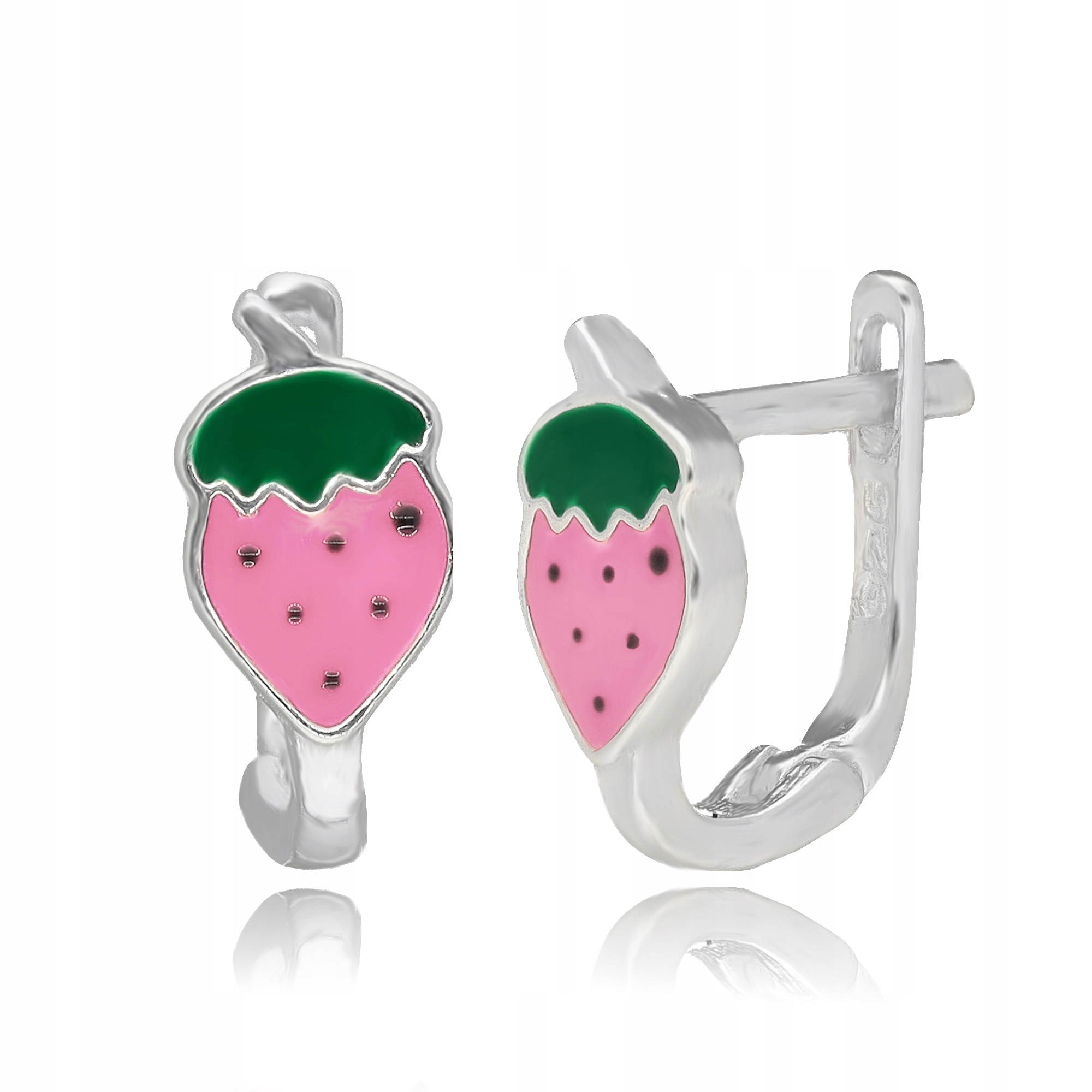 Предметом предложения являются небольшие, изящные, эмалированные серебряные серьги в форме розовой клубники.