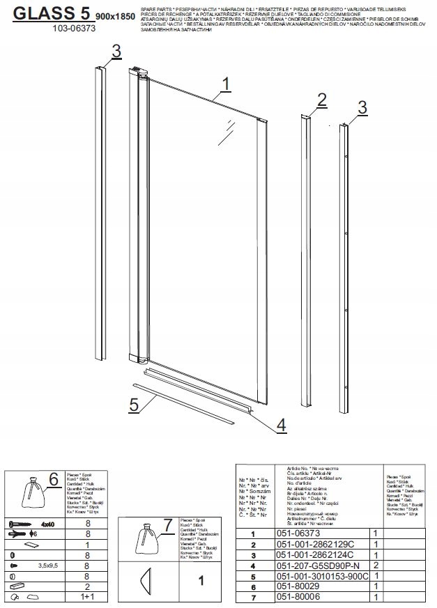 Нижній ущільнювач 80см GLASS 5 Aquaform