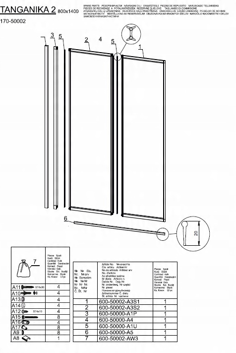 Нижнее уплотнение шторки для ванны Tanganika Aquaform 97см.