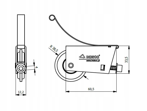 Нижній візок, колесо, ролик для розсувних дверей INDECO.