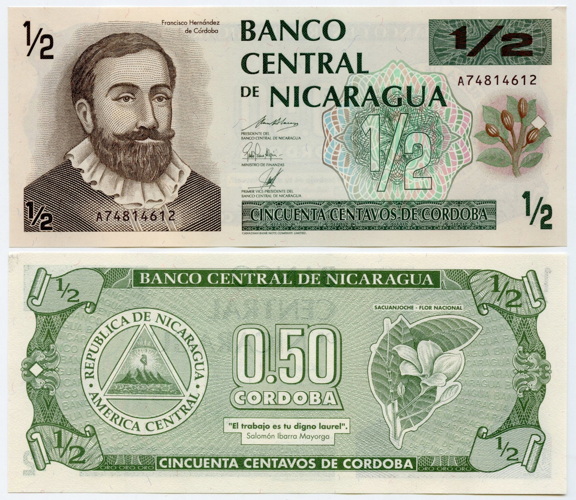 Никарагуа 1/2 0,5 Cordoba 1992 P-172 UNC