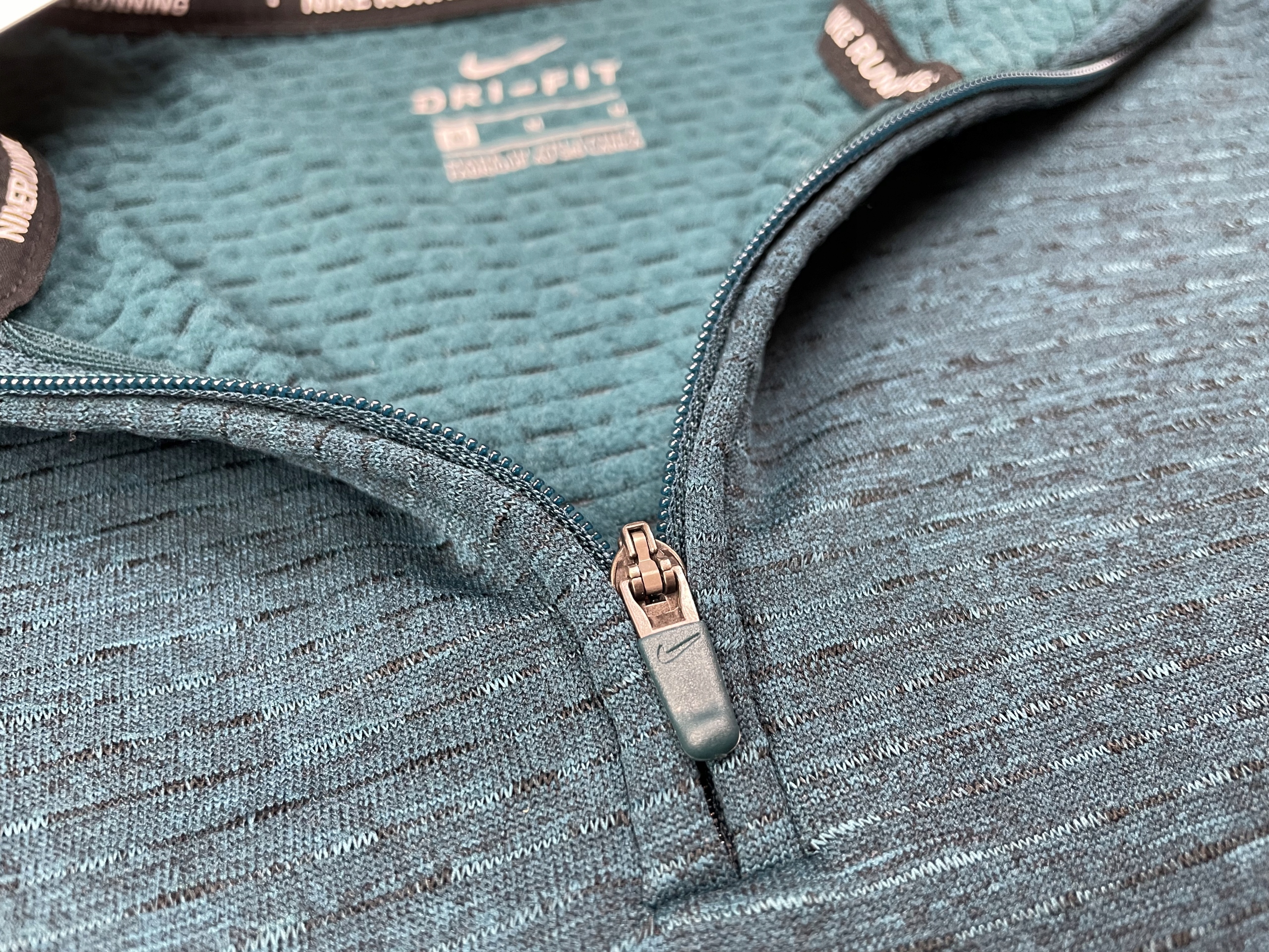 - Свитшот прямого кроя чудесного темно-бирюзового цвета. Имеет воротник-стойку, застегивающийся на молнию. На рукаве напечатан светоотражающий логотип бренда. На спине толстовки имеется светоотражающая полоса с принтом. Он имеет плоские швы, что определенно обеспечивает комфорт при занятиях спортом. В нем вырезаны отверстия для больших пальцев и небольшой кармашек посередине рукава, куда помещается ключ.