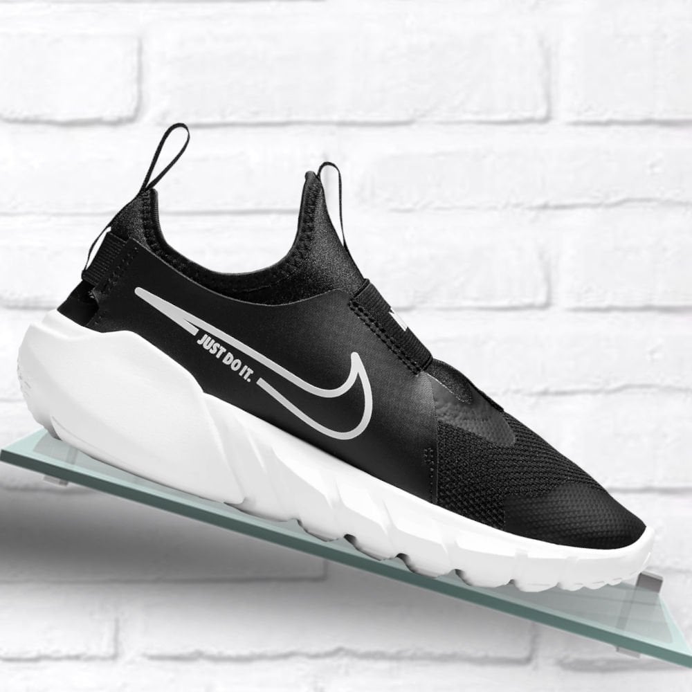 Простые кроссовки. Кроссовки Nike Flex Runner 2 предназначены для активных детей, которые любят играть целый день в тренажерном зале и за его пределами. Эластичный внутренний носок позволяет легко надевать и снимать обувь, обеспечивает плотное прилегание и комфорт. Ремешок на пятке и кожа по бокам стабилизируют стопу. Гибкая пенная подошва с глубокими вырезами дает ощущение безопасности во время бега. Рисунок на подошве увеличивает сцепление со многими поверхностями.