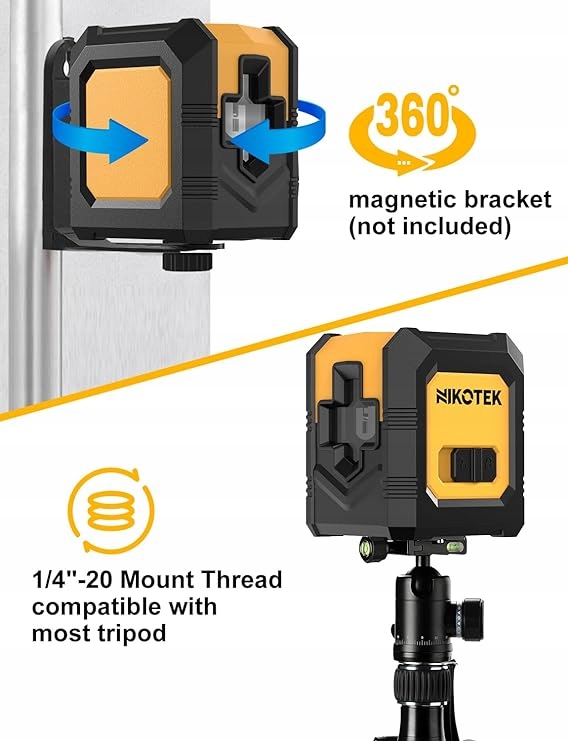 - 【Удобная конструкция крепления】Лазерный уровень можно установить на штатив 1/4"-20 (не входит в комплект) или прикрепить к Большинству металлических поверхностей используется магнитный кронштейн (не входит в комплект), который позволяет вращать лазерный уровень на 360 градусов, проецировать линии в любом положении и под любым углом или регулировать высоту штатива в соответствии с вашими требованиями. ул>
