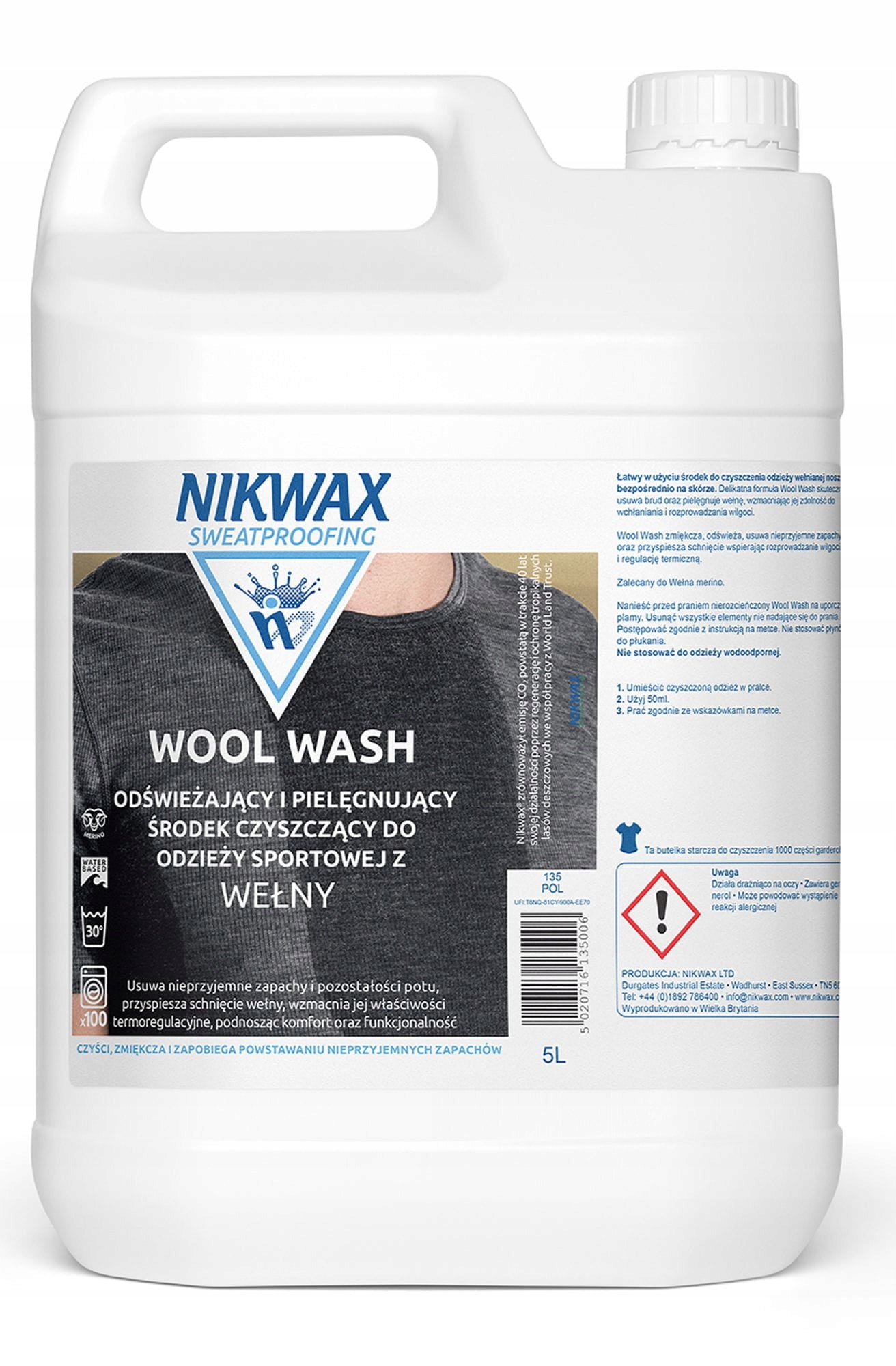 Nikwax® Wool Wash — средство, созданное специально для чистки и ухода за одеждой из натуральной шерсти. Инновация Nikwax® заключается в использовании деликатной формулы для очистки шерстяной одежды, которую носят непосредственно на коже, при этом усиливая влагопоглощающие свойства шерсти. Рекомендуемый продукт, среди прочего: для мериносовой шерсти. Wool Washоблегчает вывод влаги с кожи через шерстяные волокна наружу.
