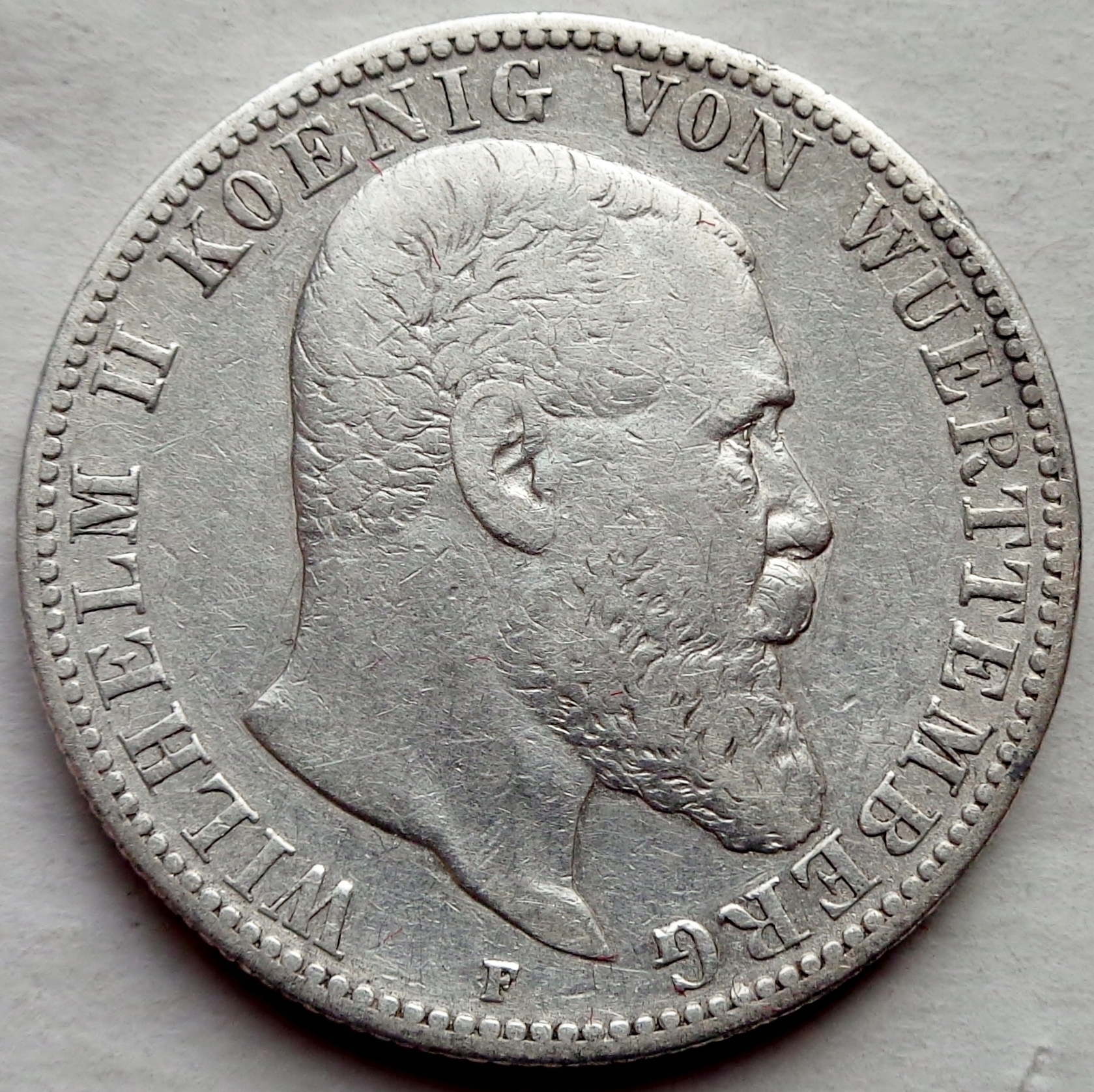Німеччина - 2 марки - 1893 F - ВЮРТТЕМБЕРГ - Вільгельм II
