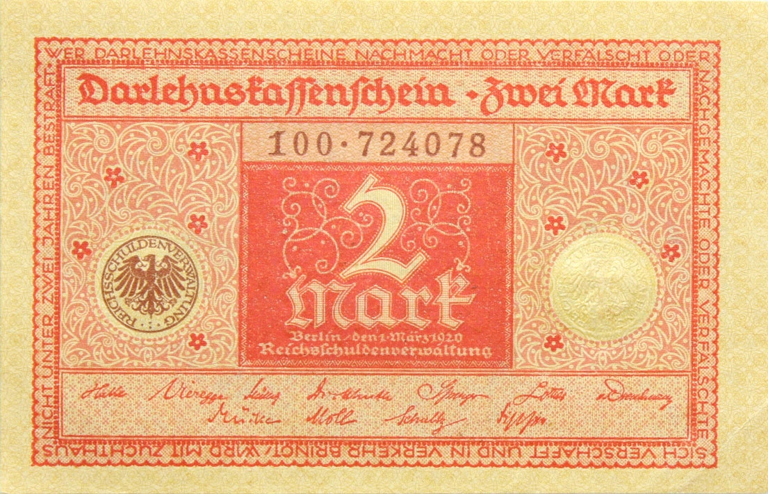 Німеччина - БАНКНОТА - 2 марки 1920 - Розенберг: 65.b