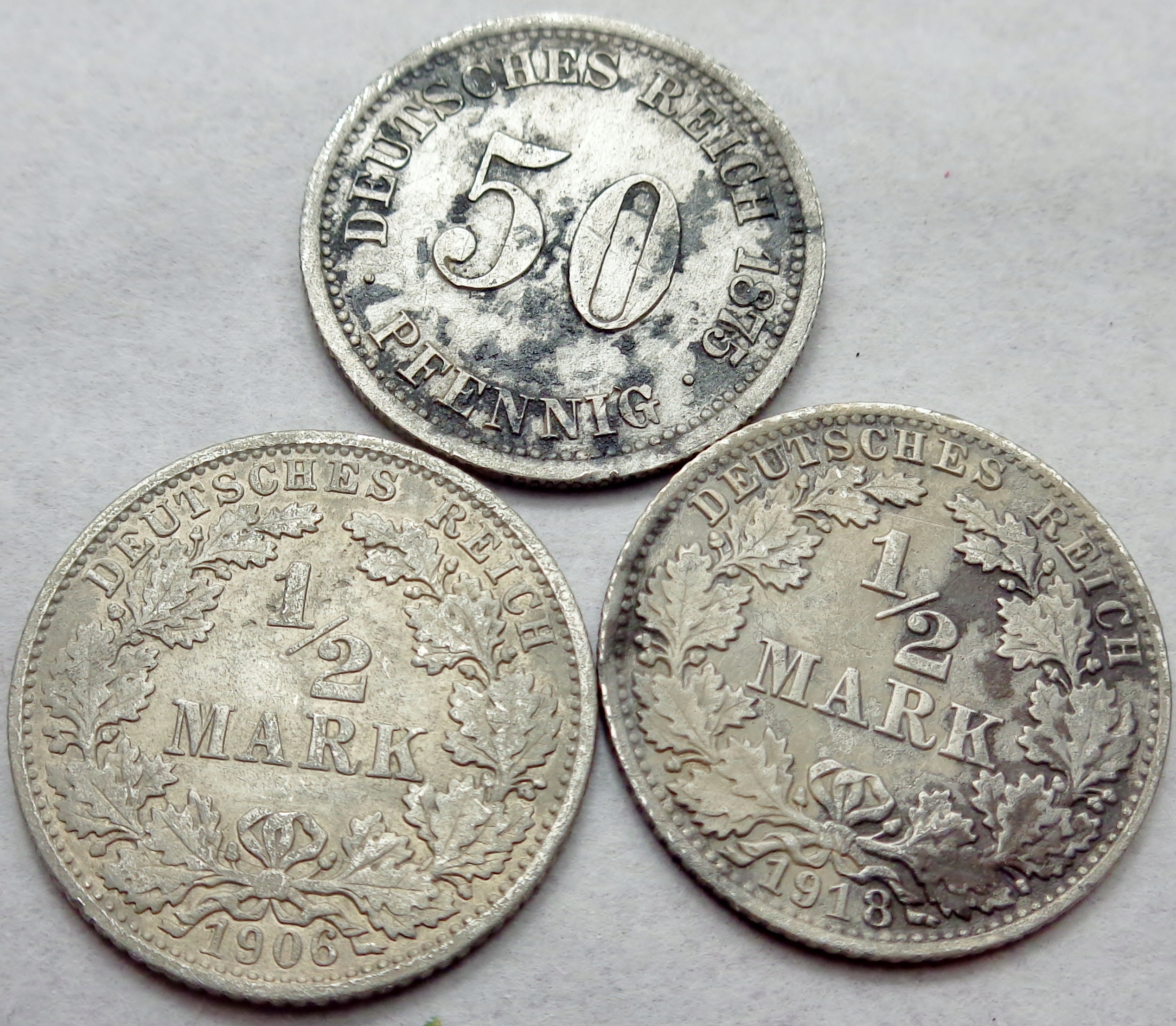 Німеччина - комплект - 50 пфенігів + 2 х 1/2 марки - срібло