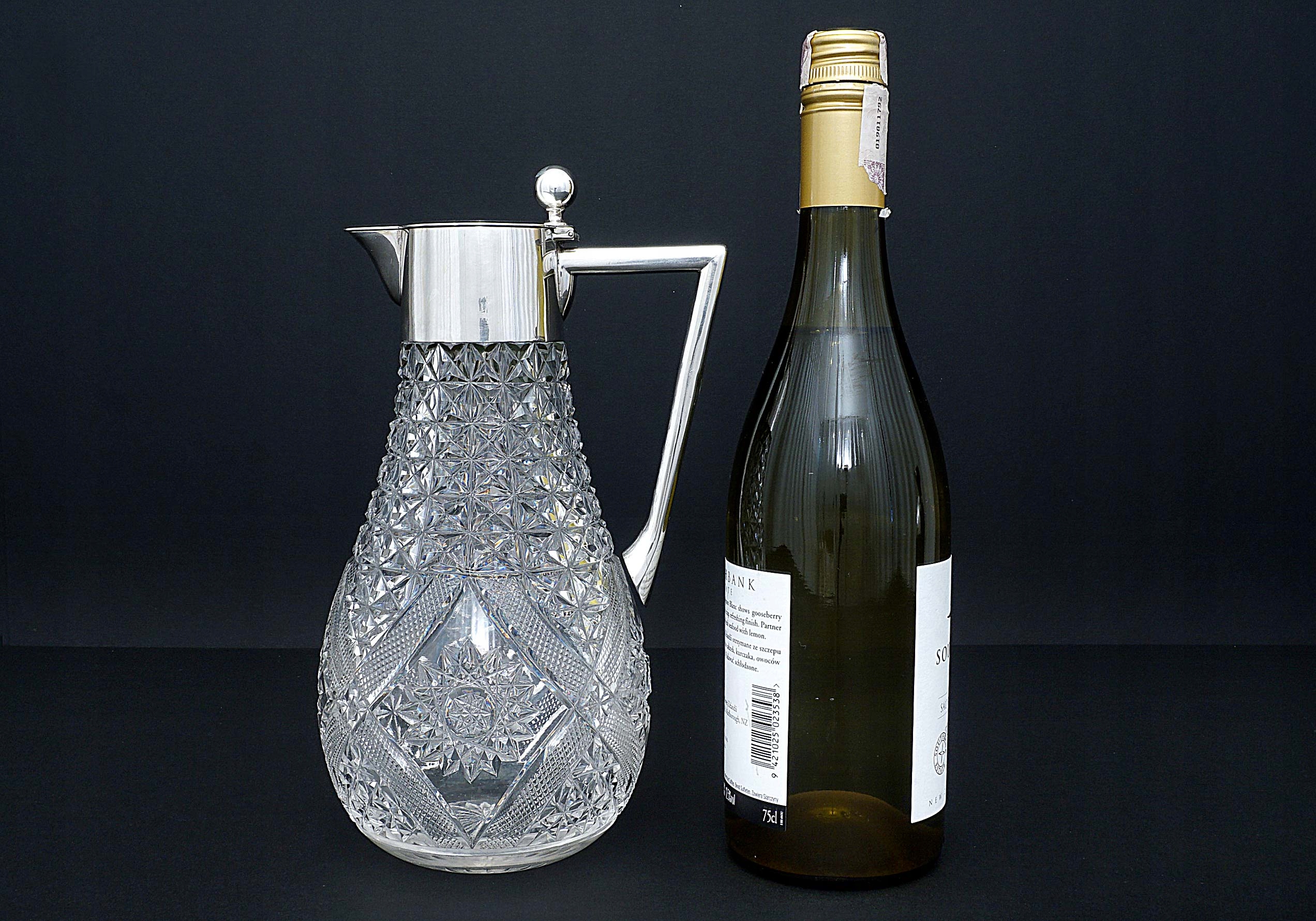 Німеччина - КРИСТАЛЬНИЙ глечик З СРІБЛОМ 25,5 см.