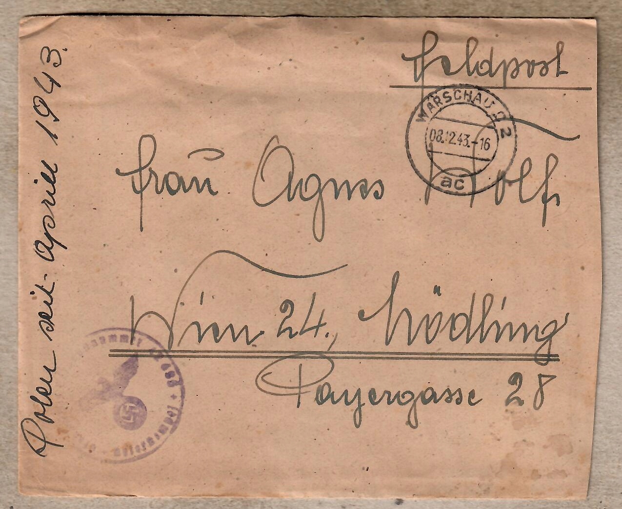 Германия, 1943 г. Варшава, Фельдпост с письмом