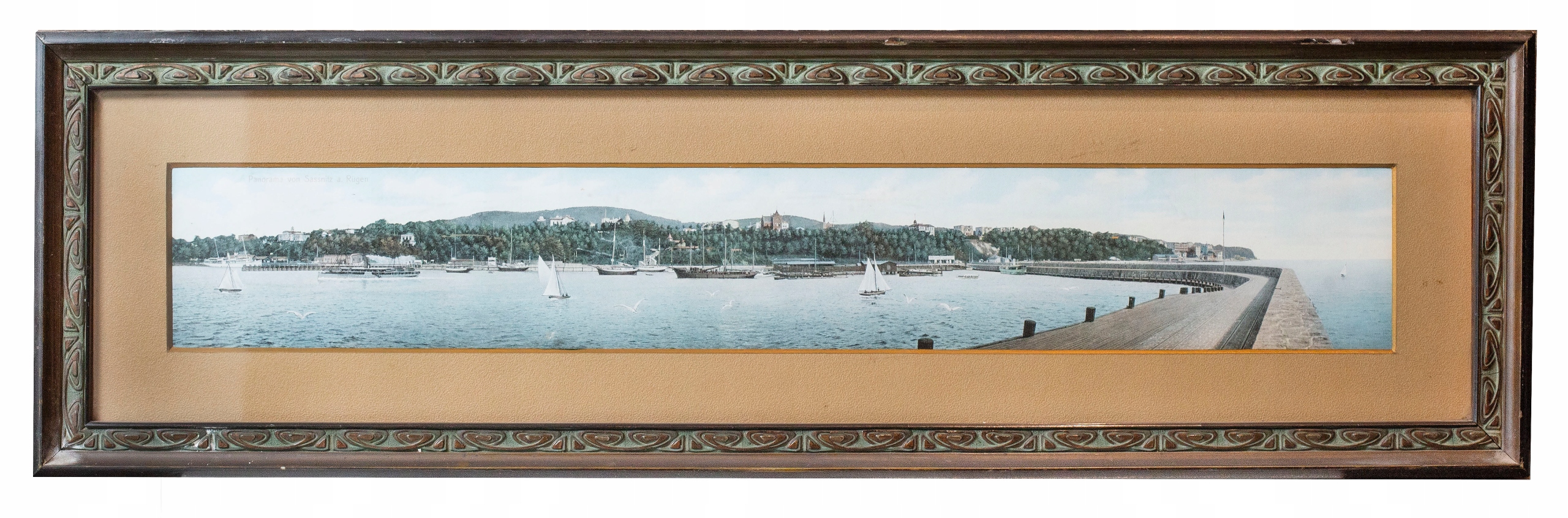 Германия, Рюген, панорама Засница, начало 20 века, на реверсе клеймо стекольного завода из Берлина, Франц Гертвиг, Берлин Тресков-штрассе 19, 27. ИЮЛ. 1907 г. и личные данные человека, который, вероятно, заказал рамку карандашом.
