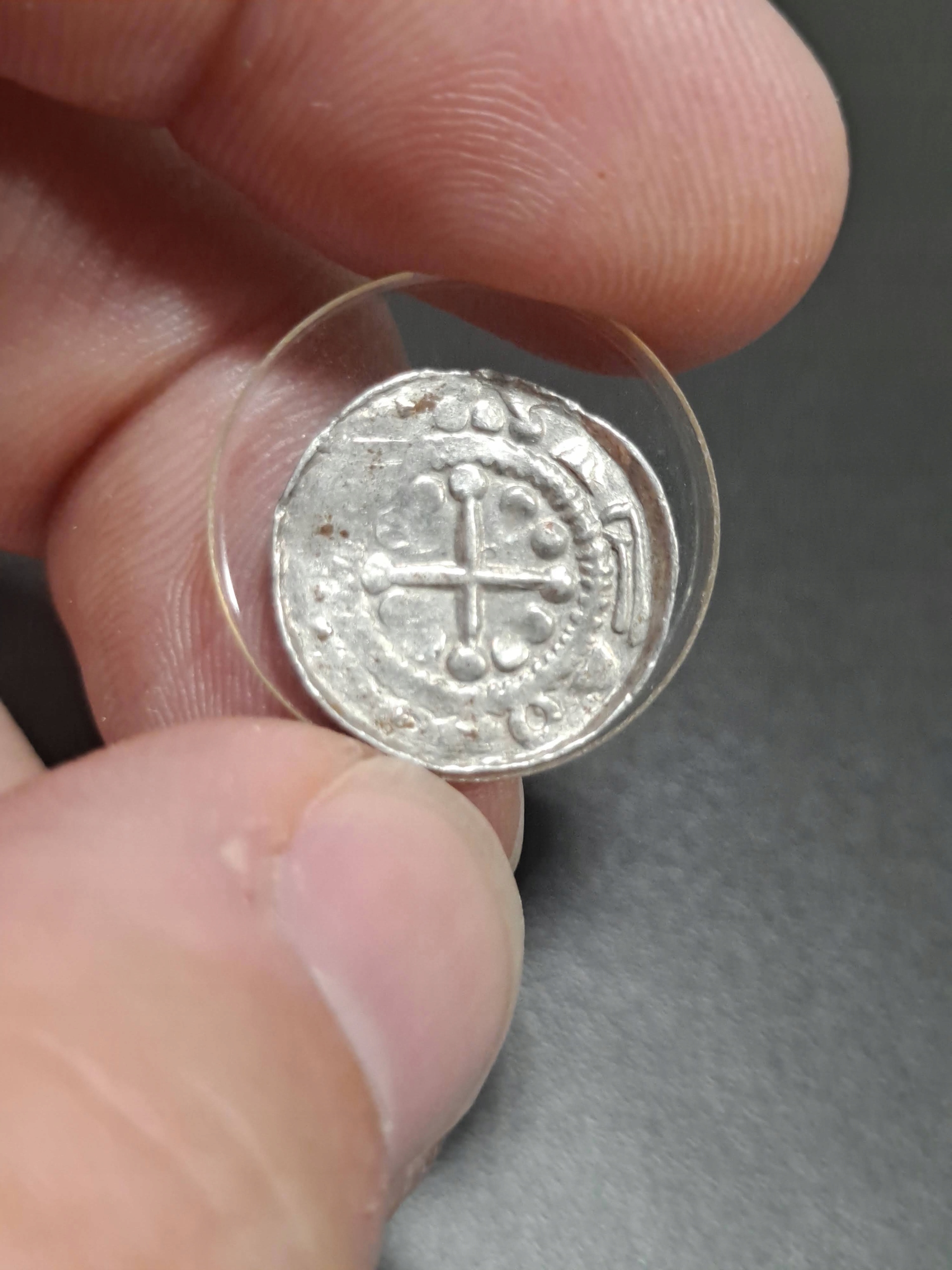 Германия, Саксония, анонимные саксонские епископы, крестовый денарий, серебро, 1,05 г, 14,6 мм. Датируется около 1060-1080 гг.