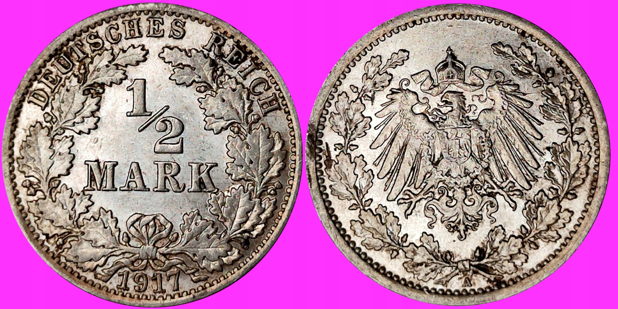 Німеччина 1/2 марки 1917 / Берлінське срібло 1339