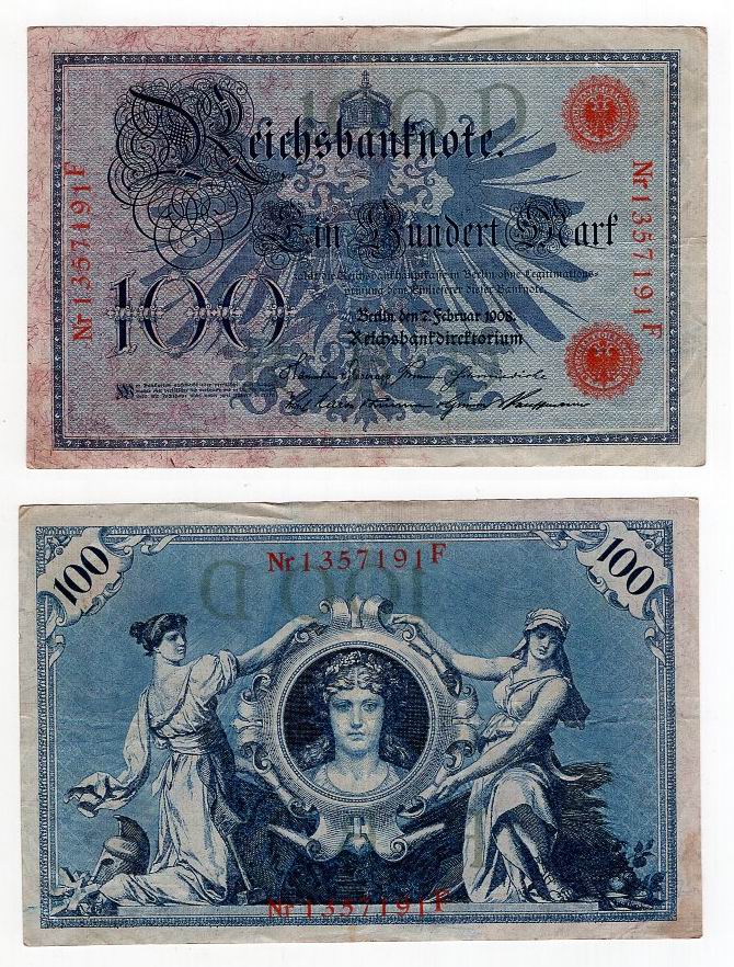 ГЕРМАНИЯ 1908 ГОДА 100 МАРОК ВАРИАНТ 1