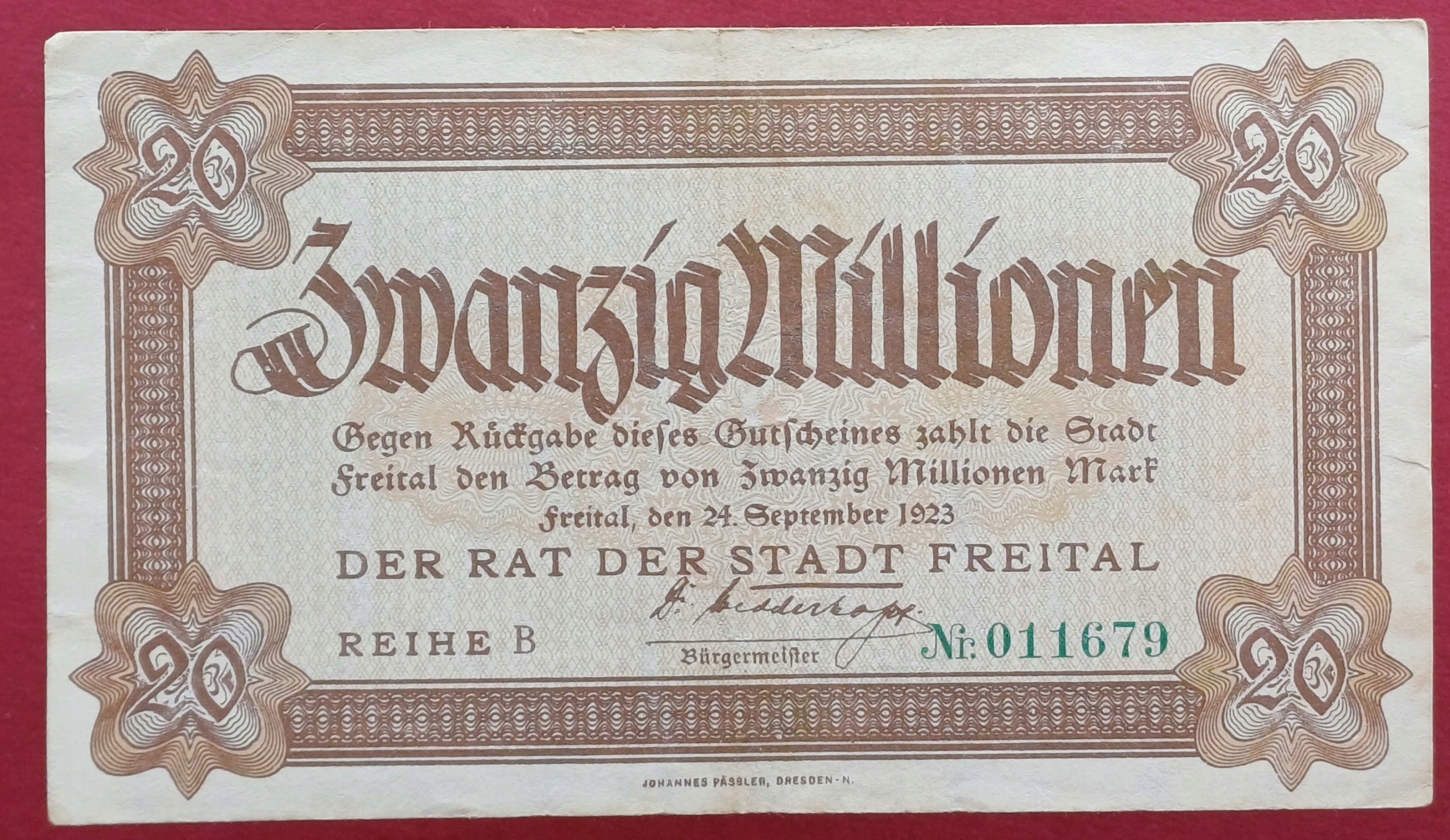 ГЕРМАНИЯ 20 МИЛЛИОНОВ МАРОК 1923 ГОДА!!!