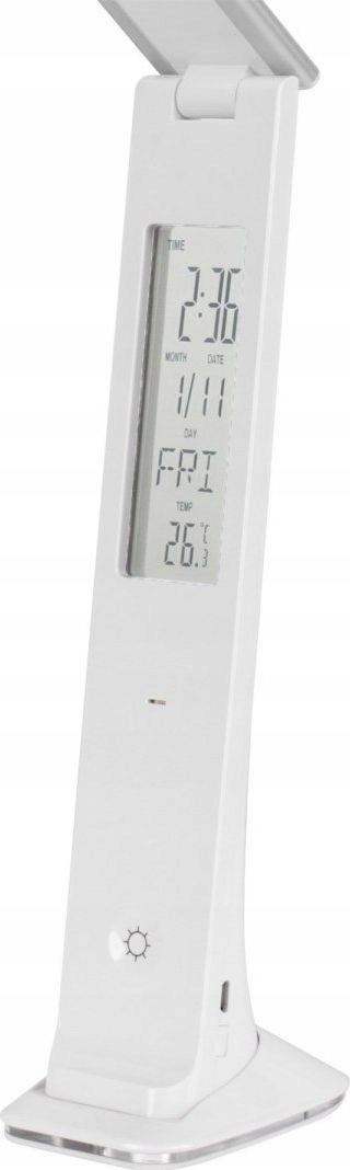 Складывая светодиодная настольная лампа Clevaful с ЖК -дисплеем со временем, датой, будильником, календарем и термометром. Он беспроводной, легкий, элегантный и универсальный в повседневной жизни. Лампа поставляется с USB -кабелем и может использоваться везде, где нет розетки.