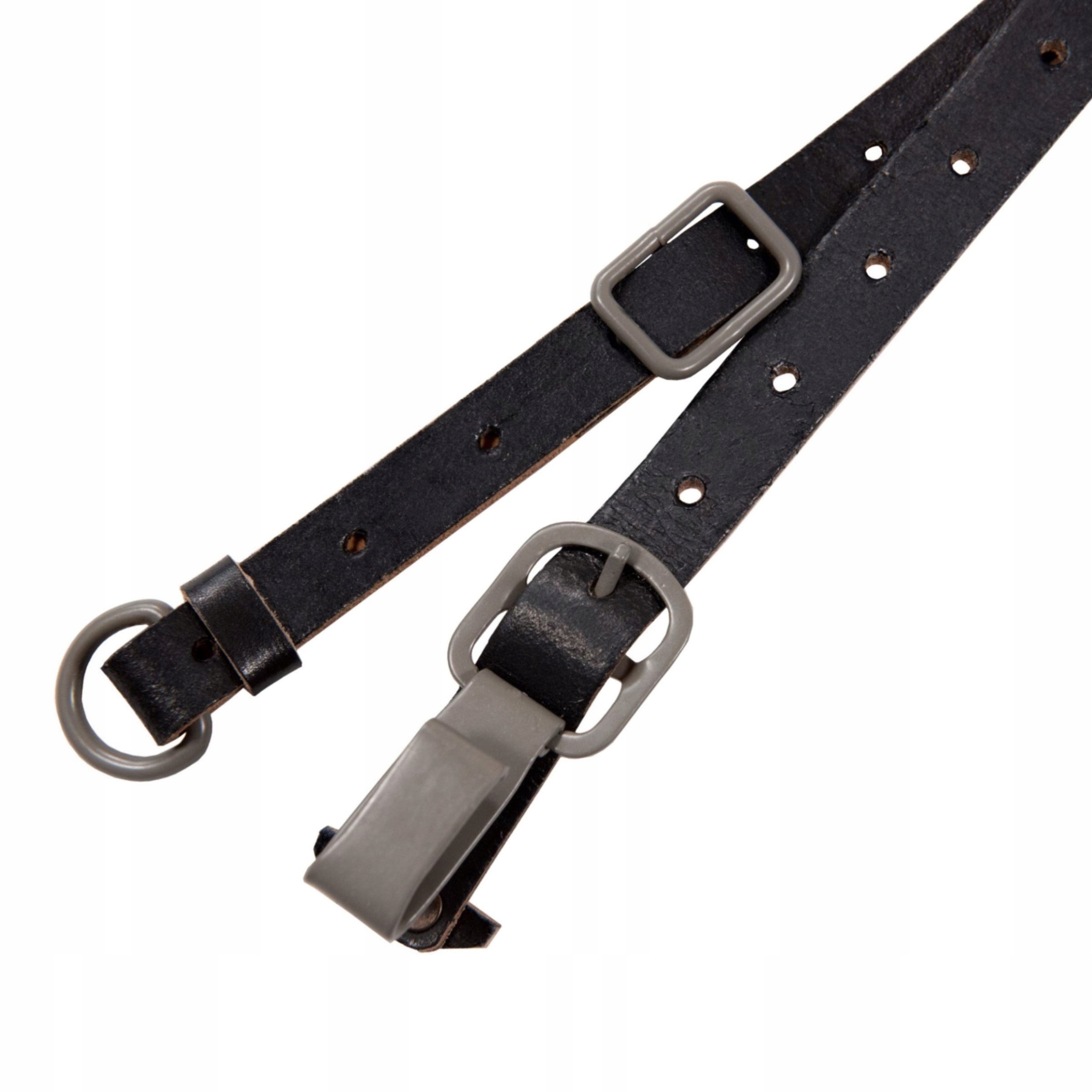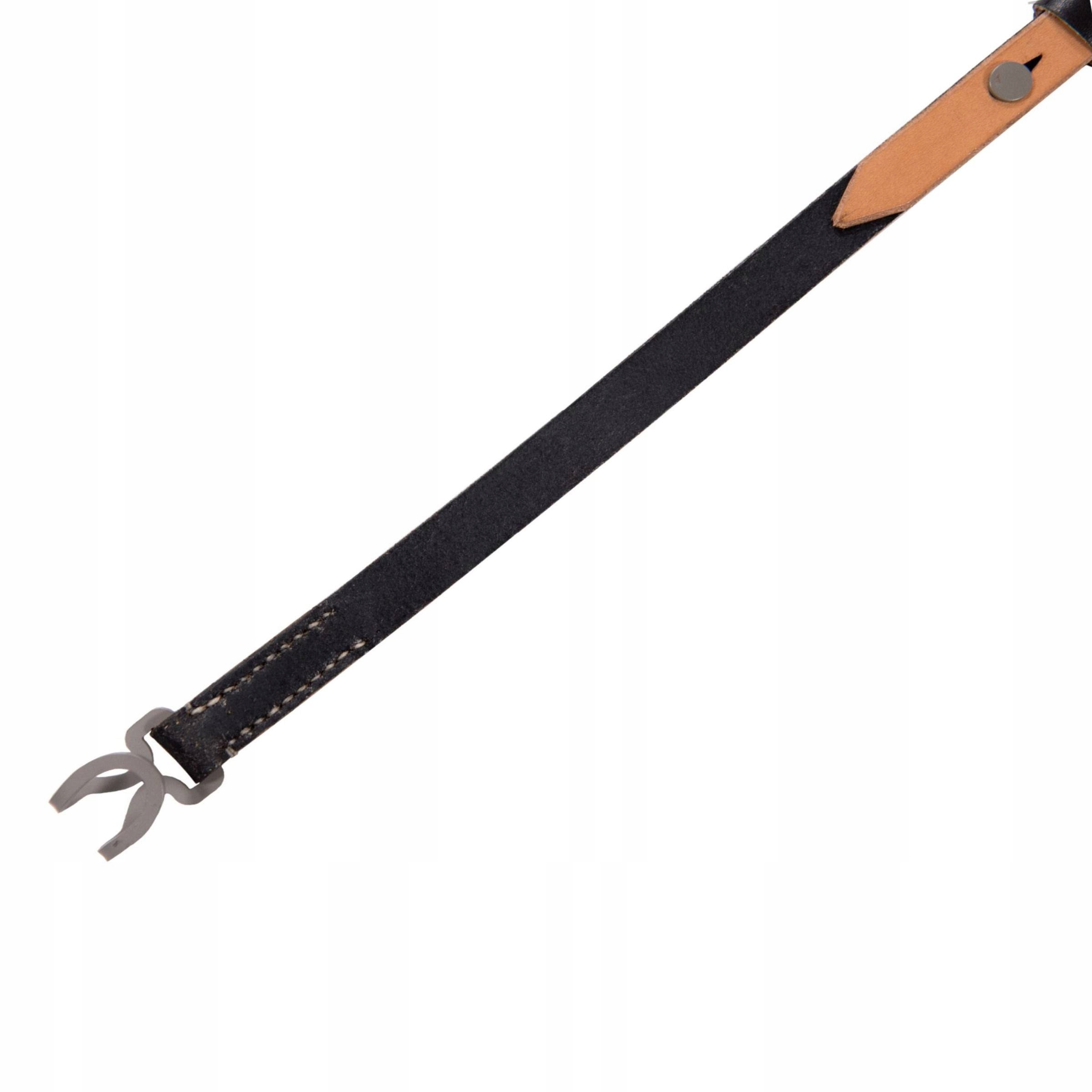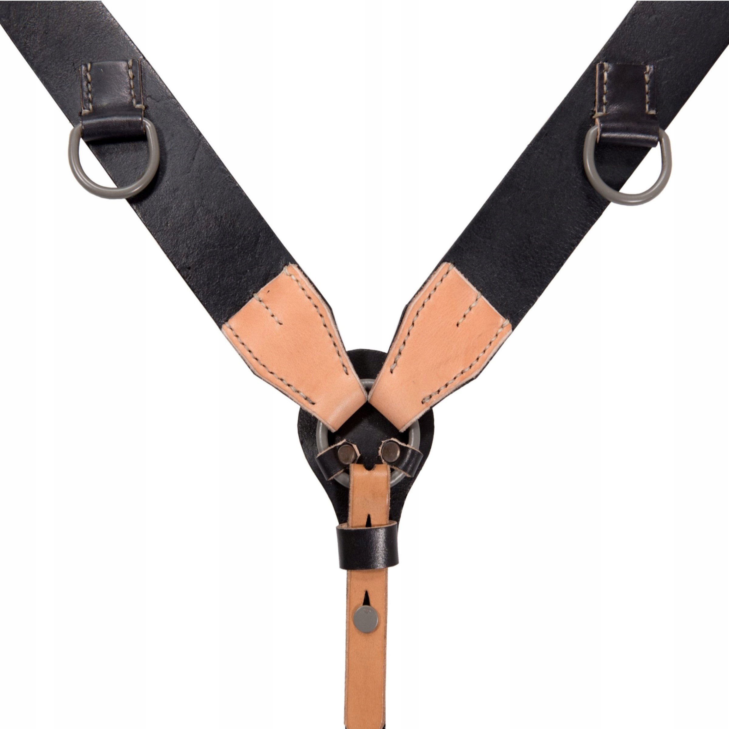 Точная копия немецких боевых подтяжек поздней версии с клепаными деталями. Изготовлен из плотной и плотной кожи растительного дубления. Окрашены в черный цвет и защищены от истирания. Точная копия оригинала. Стальные крючки и фурнитура, окрашенные в нужный цвет. Прошит вручную вощеной нитью. На основных бретелях виден шов, задняя бретелька упрощена проволочным крючком. Верно с 1943 года. На упряжи имеются копии оригинальных штампов и кнопиков, с помощью которых регулируются упряжи.