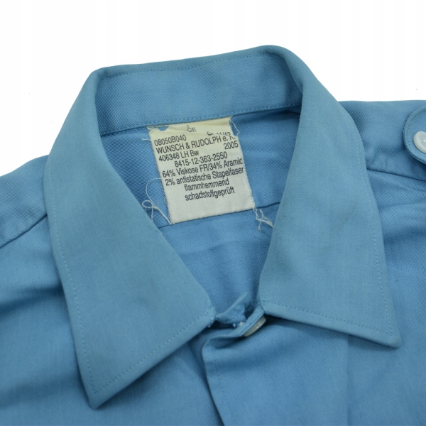Оригинальная синяя рубашка из ресурсов немецкой армии. Рубашка оснащена двумя карманами на уровне груди, застегивающимися на пуговицы. Манжеты застегиваются на пуговицы, на плечах немецкие флаги.