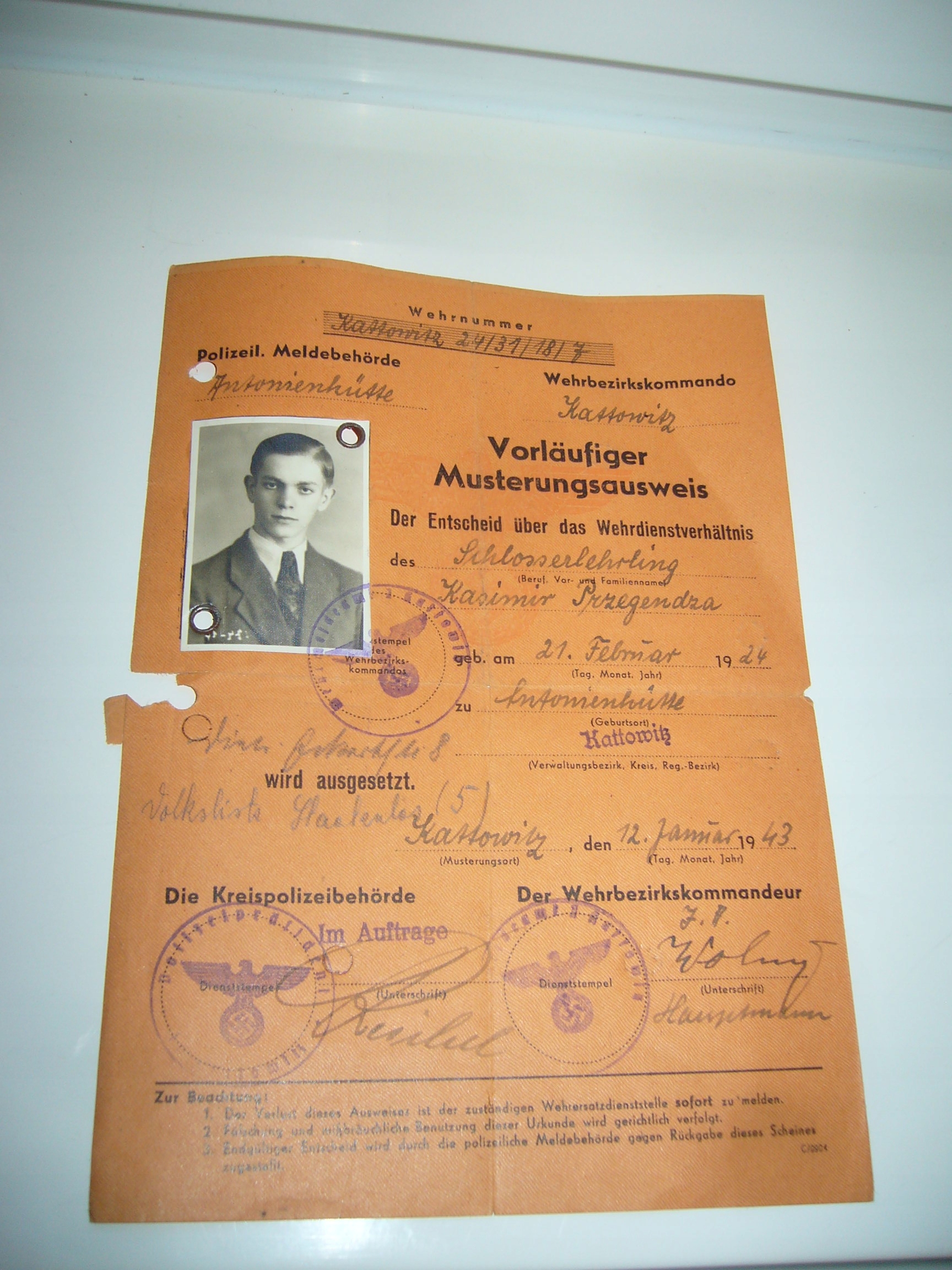 НЕМЕЦКИЙ ДОКУМЕНТ ПРЕДВАРИТЕЛЬНОГО РАЗРЕШЕНИЯ КАТТОВИЦ КАТОВИЦЕ 1943 СИЛЕЗИЯ