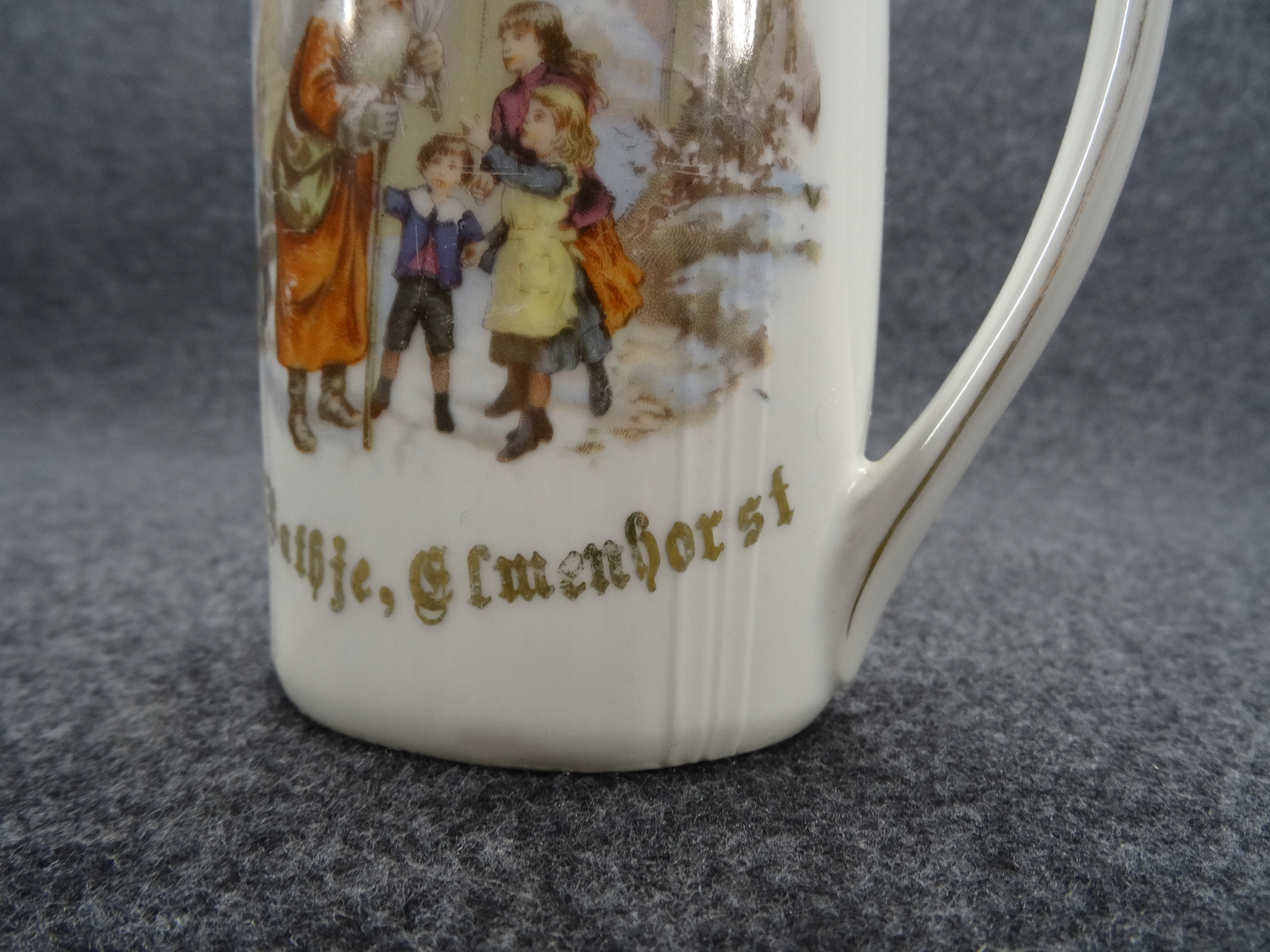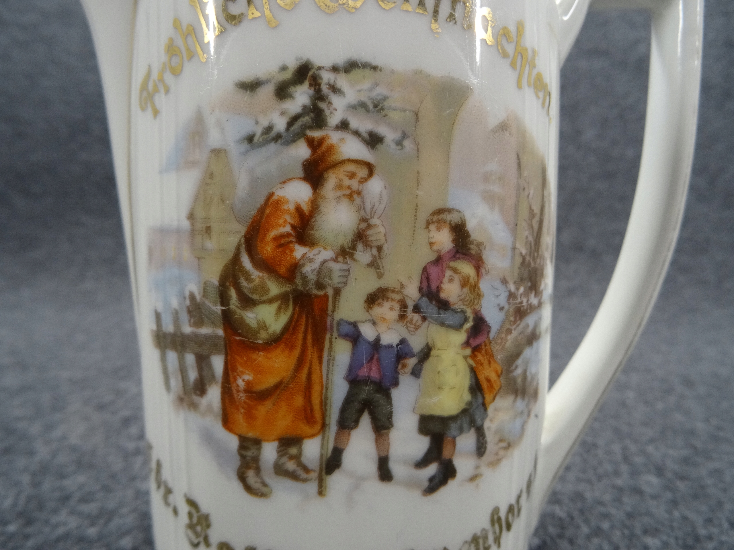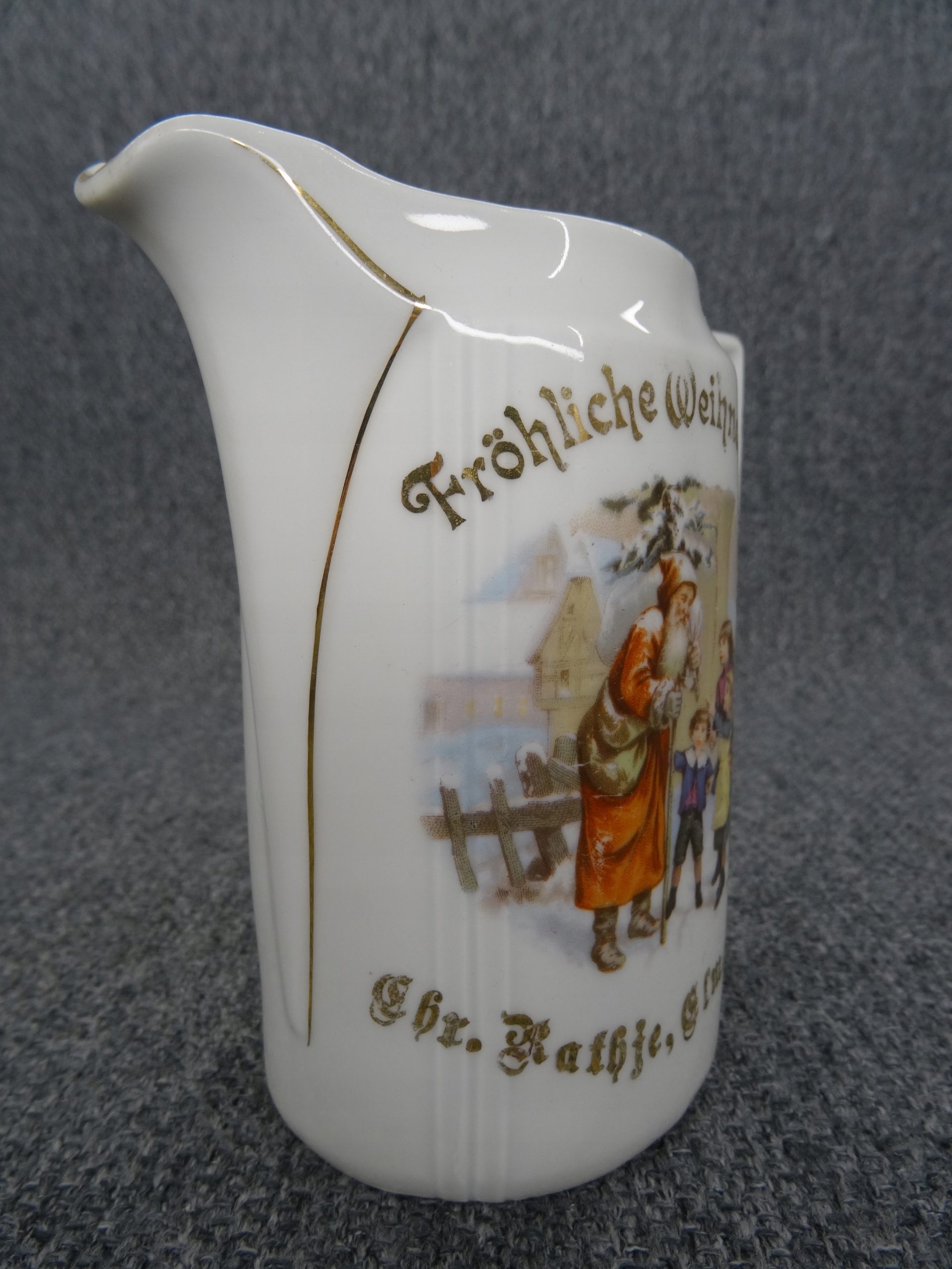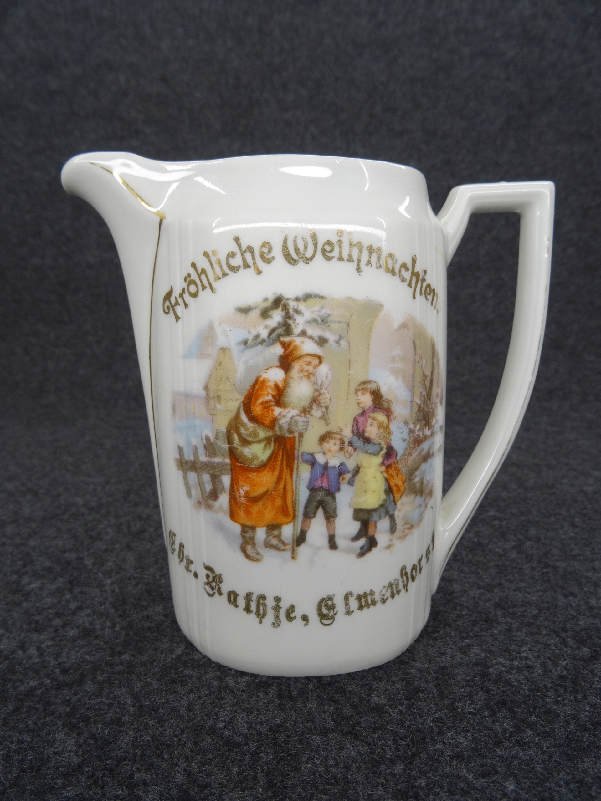 Фарфоровый немецкий довоенный молочник с немецкой надписью по краю: С Рождеством, Дед Мороз с детьми.