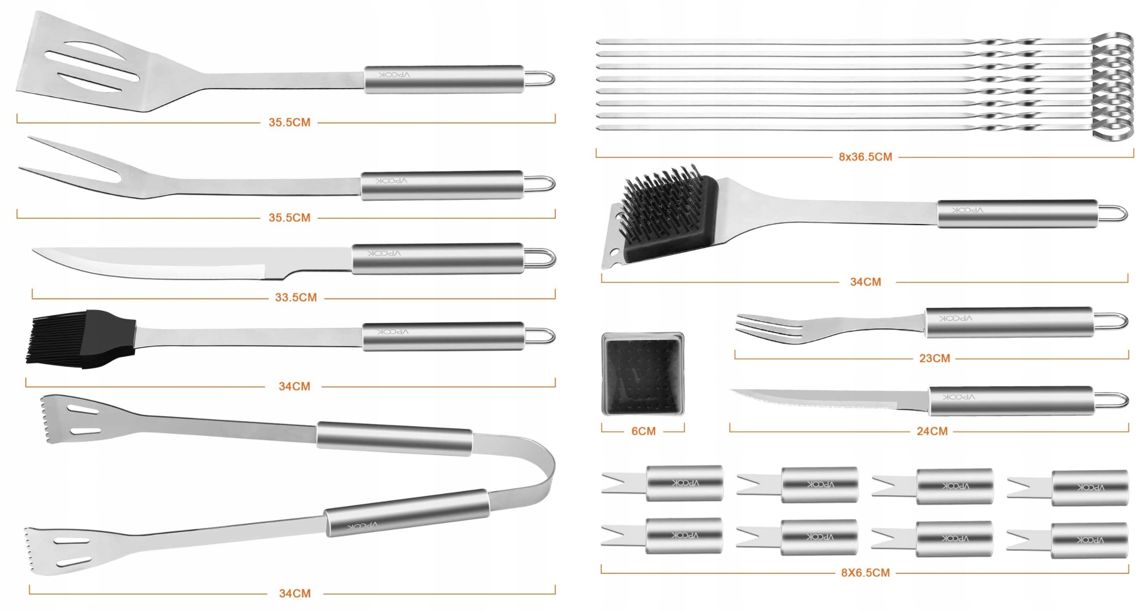 Изготовлены из высококачественной пищевой нержавеющей стали. Быть прочным и долговечным. За этими аксессуарами для гриля легко и просто ухаживать и чистить. Легко чистится и можно мыть в посудомоечной машине.