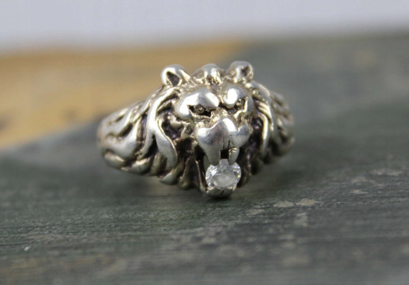 Оригинальный второй немецкий офицер Синдет с характерным открытым ртом льва. Все в образце серебра ок. Продукт украшен грандиозным стеклом, имитирующим алмаз, встроенный во рту. Состояние очень хорошее с деликатными ссадинами в результате долгого использования. Размеры: