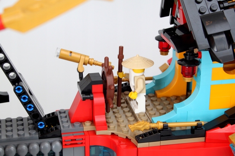 - Дирижабль поставляется с минифигурками Мастера Ву, Арина, Соры, Ллойда, Кая и Рэптона, каждый из которых вооружен как минимум одним оружие для ролевых сражений.