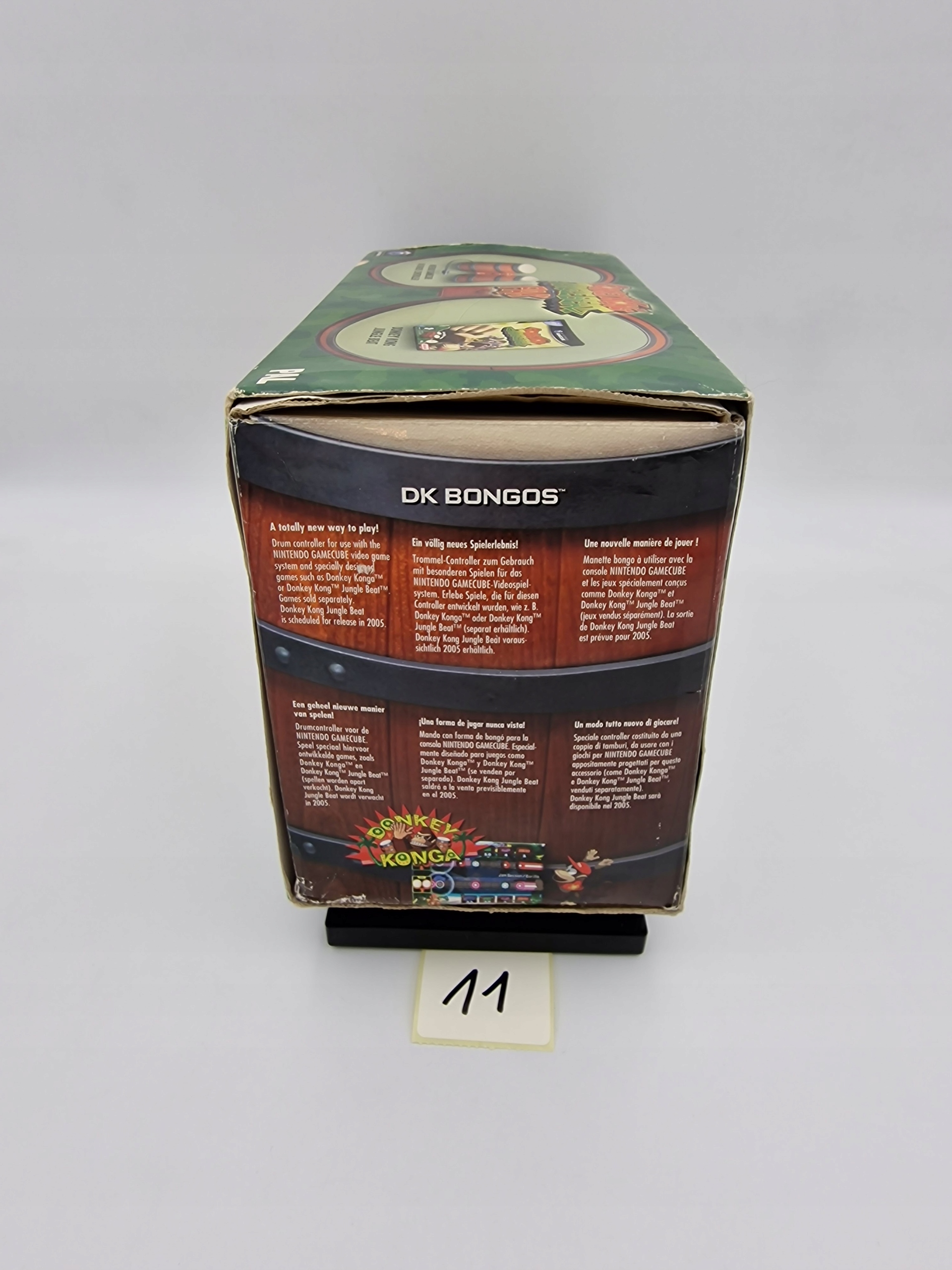 DK Bongos — игровой контроллер, созданный в 2003 году компанией Nintendo для консоли GameCube. Он был создан по образцу бонго — кубинского музыкального инструмента, состоящего из двух соединенных друг с другом барабанов. Первой игрой, в которой использовался этот контроллер, была музыкальная игра Donkey Konga, задачей игрока было отстукивать мелодию на бонго DK в ритме музыки. Контроллер DK Bongos стандартно продавался вместе с играми Donkey Konga и Donkey Kong Jungle Beat, а помимо этих игр он также использовался в Donkey Kong 2 и Donkey Kong 3 (выпущенных только в Японии). p>