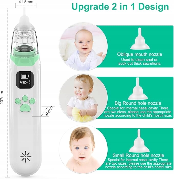 Этот аспиратор является удобным и безопасным решением для родителей, которые хотят быстро и эффективно заботиться о дыхательных путях своего ребенка.