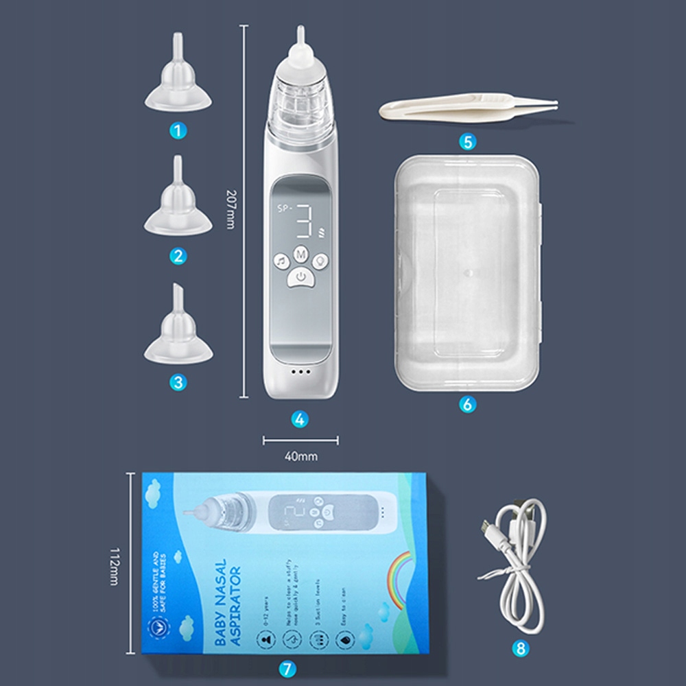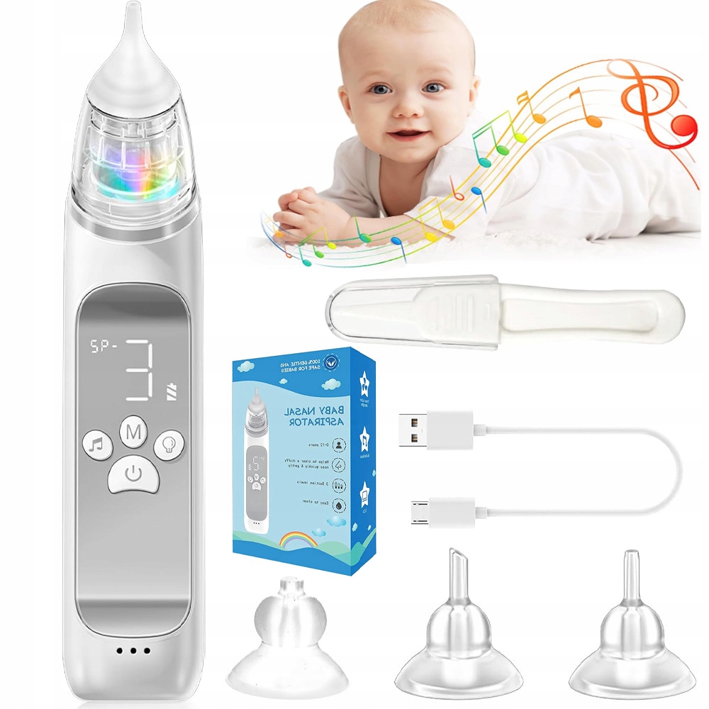 ✅✅-- Благодаря трем регулируемым уровням всасывания он может легко справиться с толстыми и редкими носовыми выделениями. Если носовая секреция ребенка сухая, перед использованием аспиратора носа используйте спрей для носа соль. - Прекрасный свет и успокаивающая музыка может отвлечь ребенка и помочь родителям легко высасываться в жидкий нос. Не погружайте устройство в воду и не промывайте его.