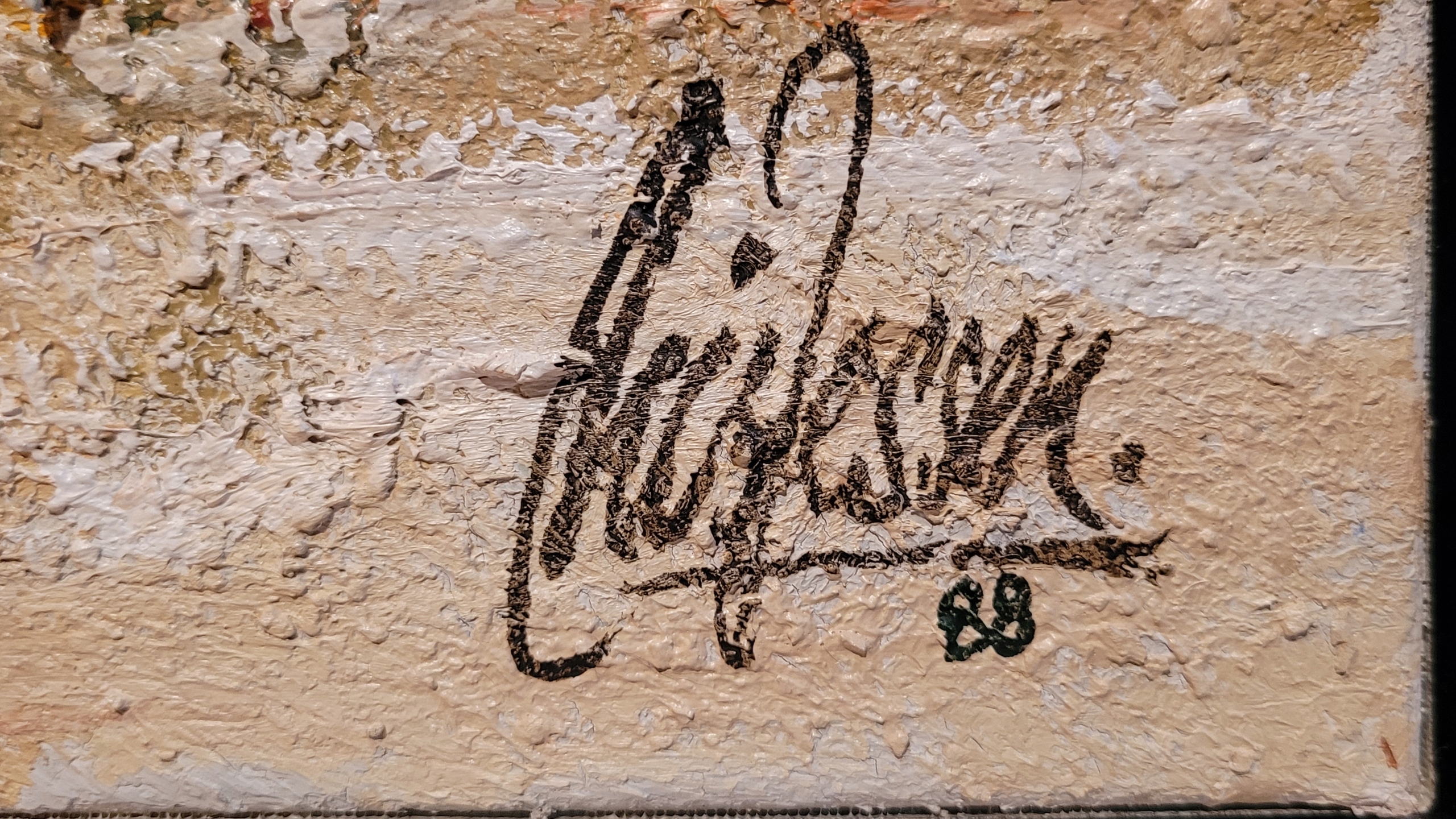 В левом нижнем углу есть ссылочный номер художника - noksen . Перечислены в ArtPrice, Mutalart, бесценных и других порталах и аукционных домах в мире.