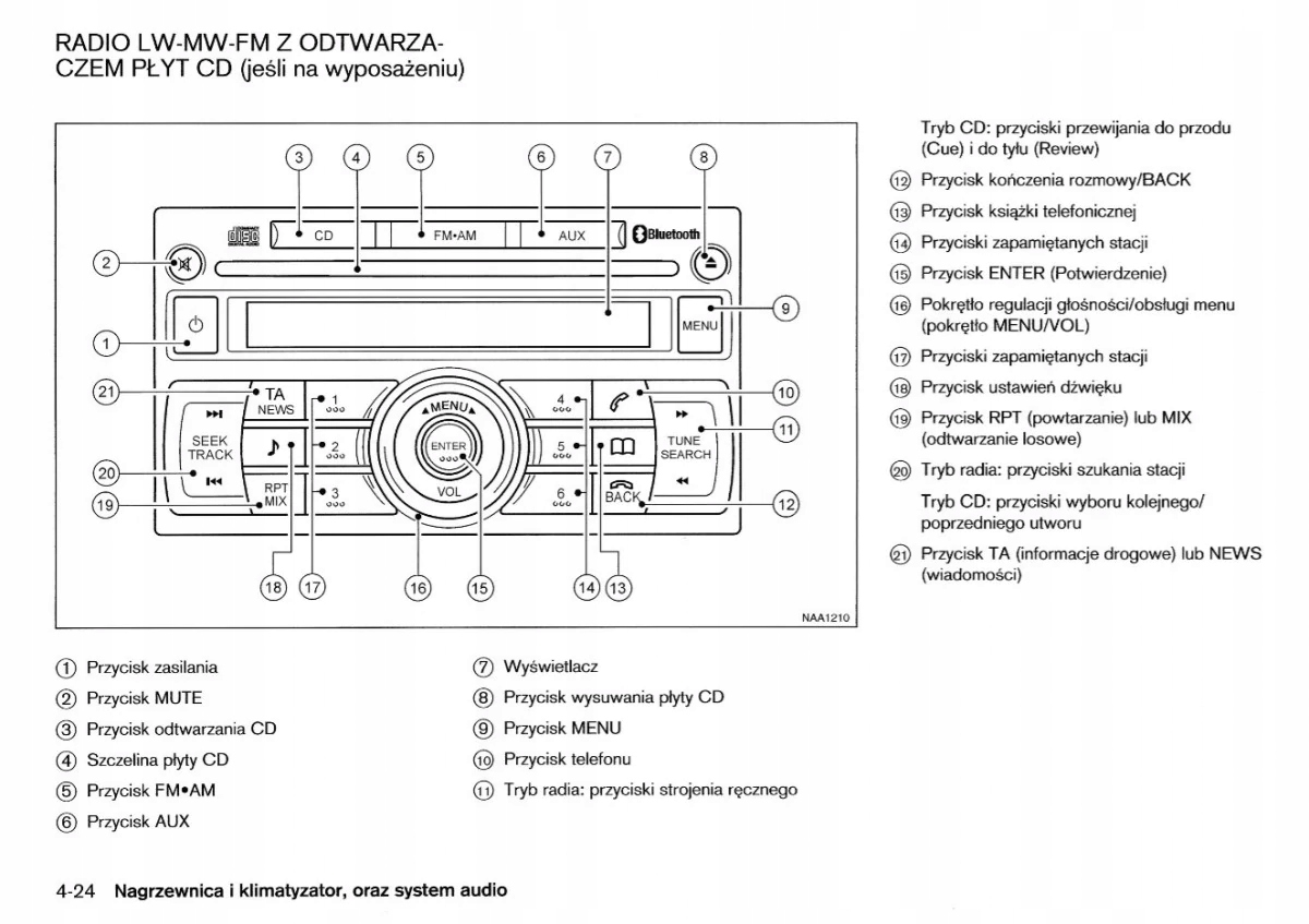 Руководство по пользователю Nissan содержит все версии оборудования и полезную информацию о том, как эффективно и безопасно использовать автомобиль, например, сиденья, места для хранения, нагревание, вентиляция, кондиционер, эксплуатационные, поддержание транспортного средства. Болотные технологические данные ... и многие другие вещи, которые дают ощущение безопасности и комфорта путешественникам. Польский закон накладывает обязательство продавцу прикрепить машину в польс. Руководство автомобиля новое и в польском.