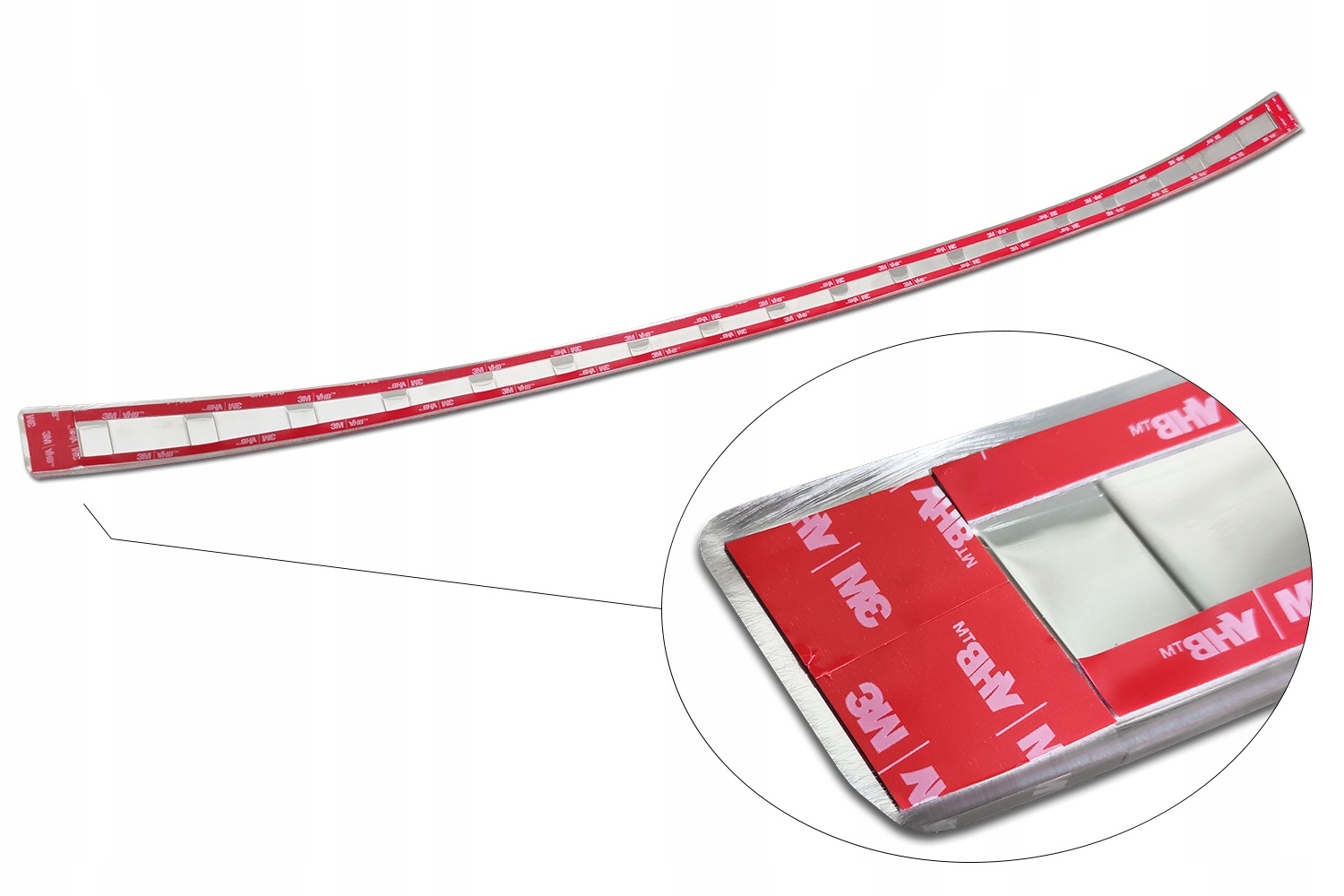 Накладка из полированной нержавеющей стали. В нем уже есть двусторонний очень прочный скотч.