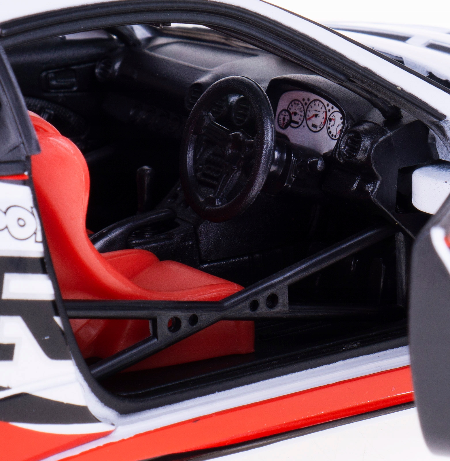 Имеет открывающиеся двери и элементы кузова, а также поворотные колеса. Модель окрашена автомобильной краской.