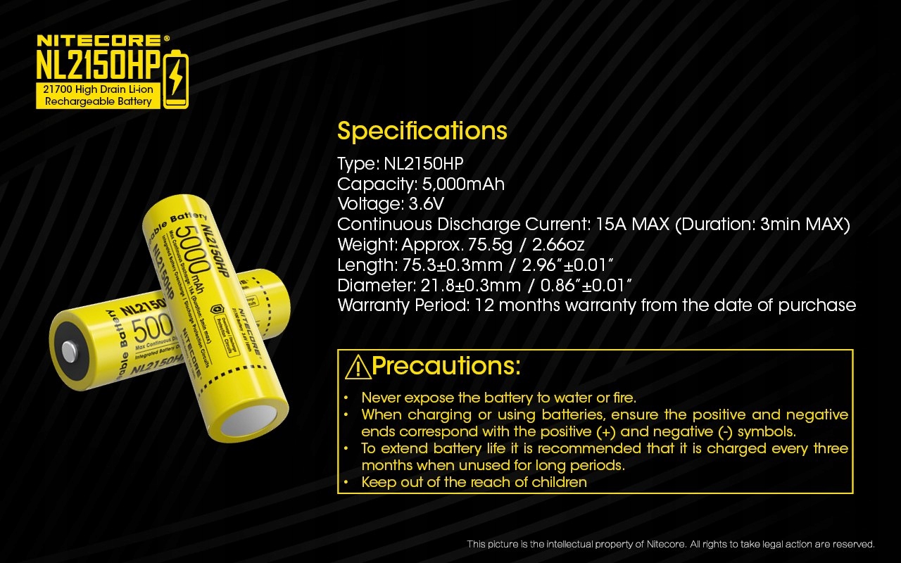 NITECORE NL2150HP обладает всеми функциями безопасности, высокое качество технологии и, как обычно у Nitecore, высокое качество. Именно эти характеристики сделали NITECORE надежным брендом литий-ионных аккумуляторов.