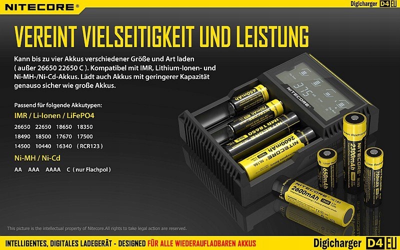 Nitecore Digicharger D4 — это интеллектуальное универсальное зарядное устройство практически для всех типов аккумуляторов.
