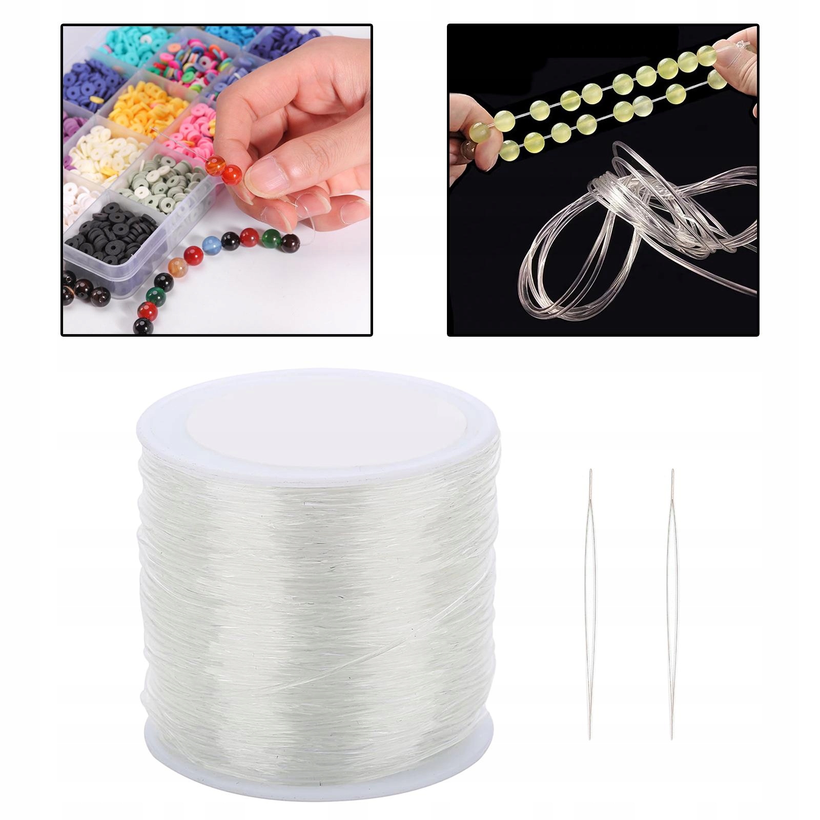 Эластичный шнур: прозрачный эластичный шнур для браслетов изготовлен из высококачественного эластичного полиэстера-спандекса, который эластичен и долговечен в использовании. Он подходит для маленьких бусин, а для больших бусин можно использовать несколько слоев.