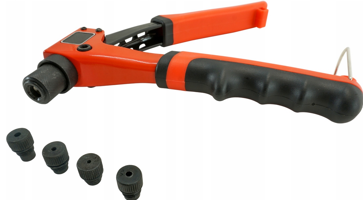 Ручные заклепки для разрыва заклепки в диапазоне от 2,4 до 4,8 мм. Корпус из алюминия, ручка углеродистой стали. У вяжущего механизма есть три челюсти. Особенность, которая отличает этот заклепка, - это чрезвычайно небольшая длина около 200 мм, это позволяет использовать питательные вещества в местах с трудным доступом. Особенно рекомендуется для механических услуг, кондиционирования и вентиляционных услуг.