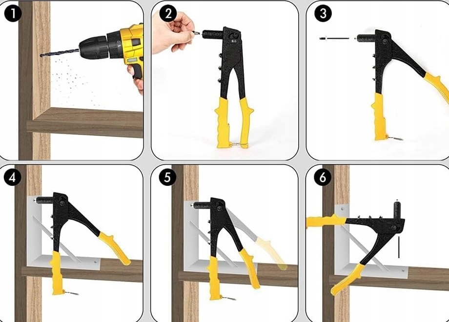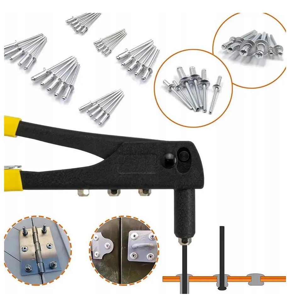 Ручной заклепочник — незаменимый инструмент для каждого любителя и профессионала, работающего своими руками, которому необходимы прочные металлические соединения и сборка в труднодоступных местах. Идеально подходит для работы с листовым металлом, ремонта автомобилей, изготовления мебели и установки вентиляции. Благодаря своей долговечности, точному исполнению и эргономичной ручке заклепочник обеспечивает длительную работу без усталости.