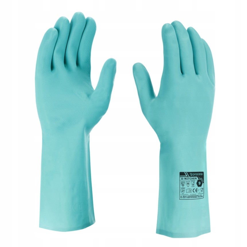 Перчатки, защищающие от химических веществ, изготовленные из 100% зеленого нитрила.