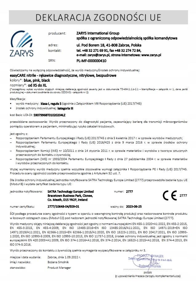 Вышеуказанный медицинский продукт соответствует всем соответствующим требованиям приложения и регулирования EP (EU) 2017/745. 7.