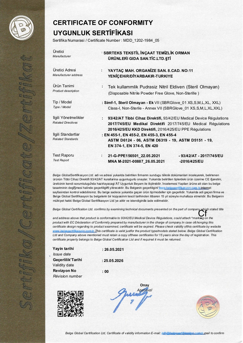 Перчатки представляют собой сертифицированное и зарегистрированное медицинское устройство, которое дает уверенность в том, что продукт прошел строгие тесты и соответствовал строгим стандартам. 2777, перчатки в соответствии со стандартами EN ISO 374-5: 2016 EN 16523, EN 455 1-4 . Используйте его в соответствии с инструкциями для использования или метки. Продукт содержит заявления о соблюдении ЕС