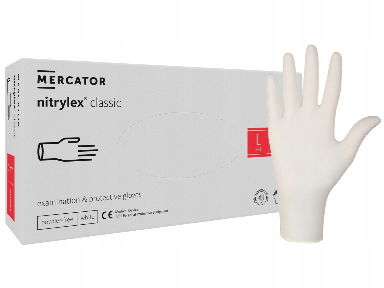 Нитриловые перчатки Mercator, Nitrylex Classic — это высококачественное медицинское изделие класса I и средства индивидуальной защиты III класса.