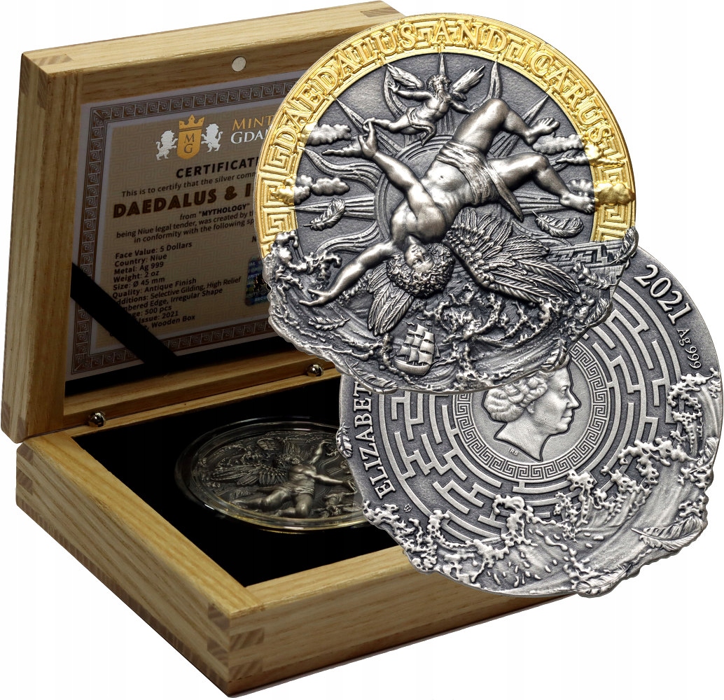 Ніуе, Єлизавета II, 5 доларів 2021, Дедал та Ікар, 2 унції срібла