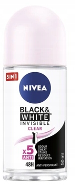 NIVEA Black & White Invisible шариковый антиперспирант для женщин. Против белых пятен на черной одежде и против желтых пятен на белой одежде. Надежная антиперспирантная защита и уход за кожей на 48 часов. Не содержит этилового спирта. Бережное отношение к коже, подтверждено дерматологически.