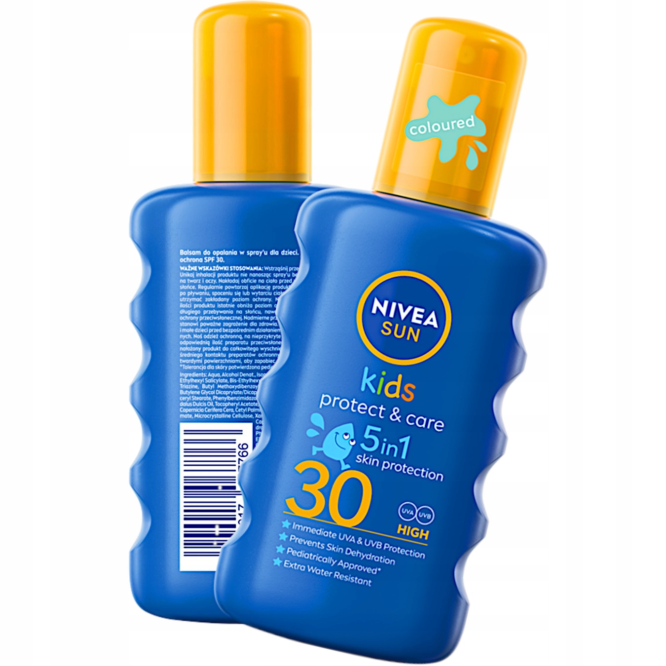 Разноцветный солнцезащитный спрей Smurf для детей NIVEA SUN Kids Protect & Care SPF 30 обеспечивает высокий уровень защиты SPF 30 благодаря эффективным фильтрам UVA/UVB.