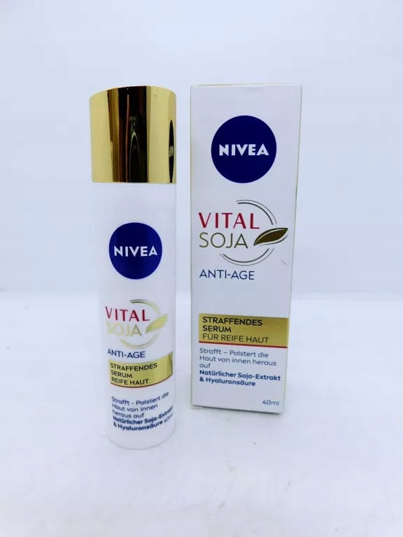 nivea Vital Soy укрепляющая сыворотка для зрелой кожи. Укрепляющаяся лицо, шея и расщепление сыворотки, регулярно используется, уменьшает основные признаки старения кожи. Обогащен гиалуроновой кислотой и соевым экстрактом, что увеличивает способность связывать воду через кожу*. В результате кожа заметно стреляется и заполнена изнутри, имитные морщины менее заметны, а кожа выглядит моложе и свежей, благодаря которой она излучает с новым сиянием. Кроме того, сыворотка сразу и интенсивно увлажняет кожу. Избегайте контакта с вашими глазами. Устойчивость кожи дерматологически подтверждена. *In vitro