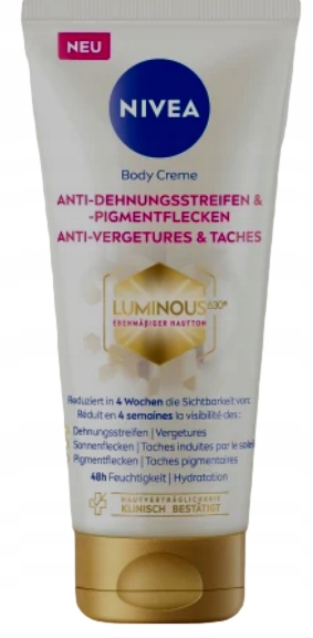 Оплачивая «Nivea Luminous Body Cream Estact отметки, пятна» данный товар из каталога «Для растяжек» вы можете быть уверены, что после оформления заказа, доставки в Украину, вы получите именно то, что заказывали, в оговоренные сроки и европейского качества.