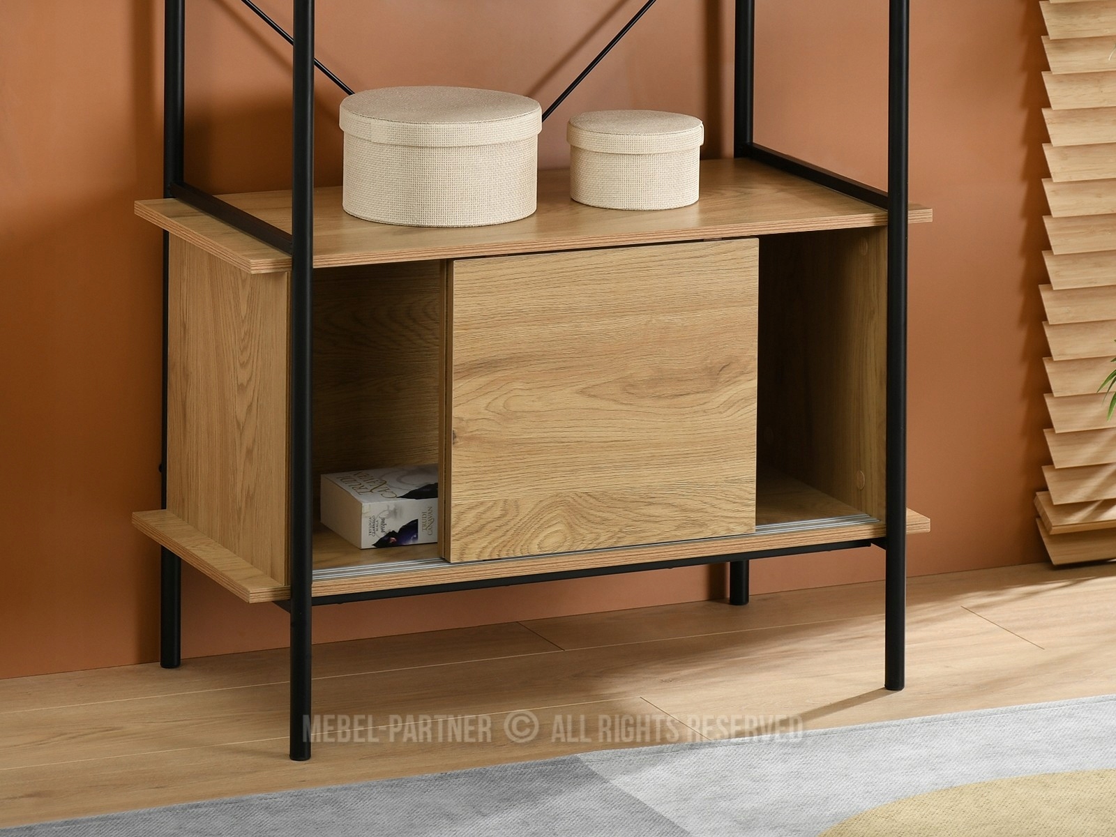 Низкий книжный шкаф с шкафом с раздвижной дверью Алма дуб на черной раме