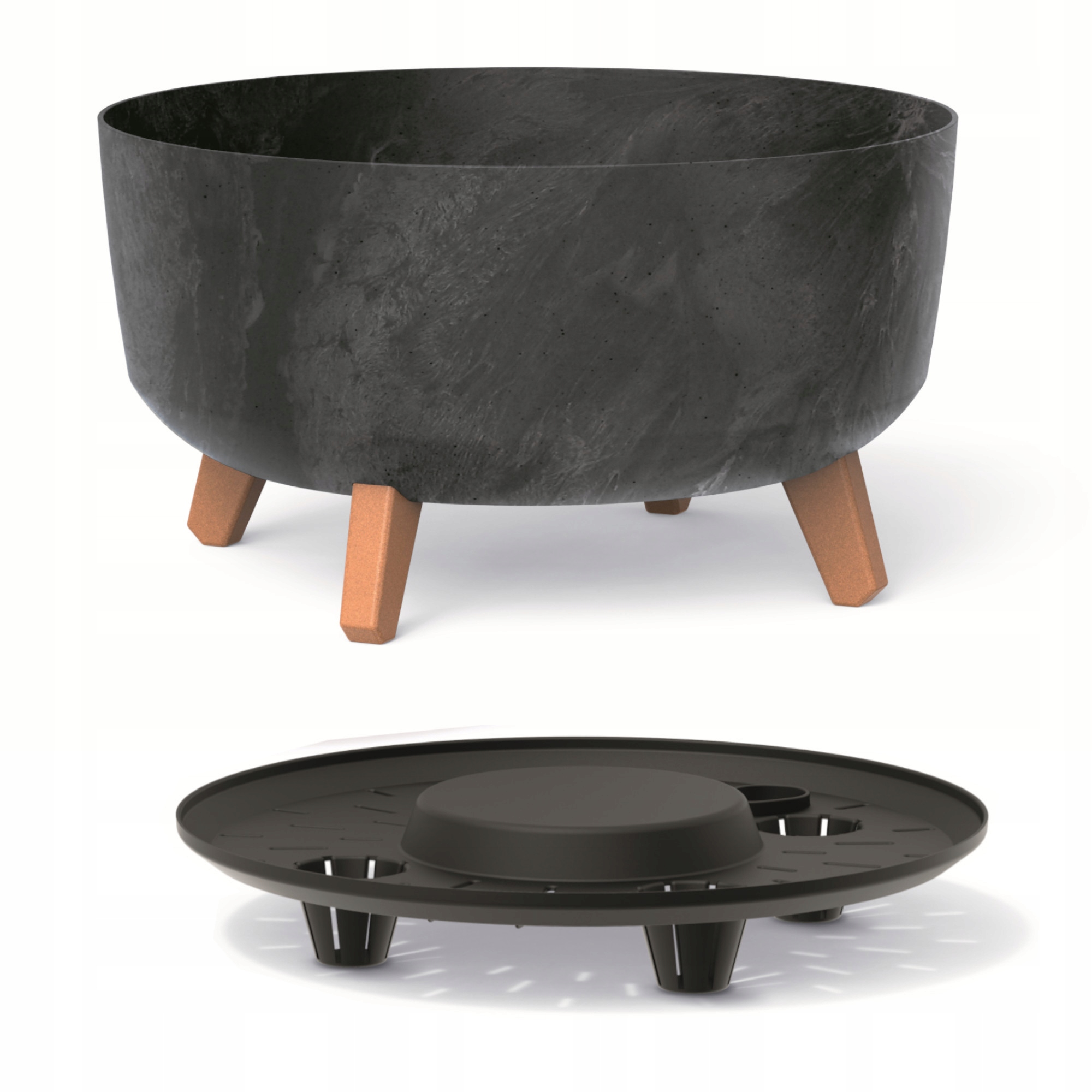 Круглый горшок с низким бетонным эффектом антрацитовых ног
